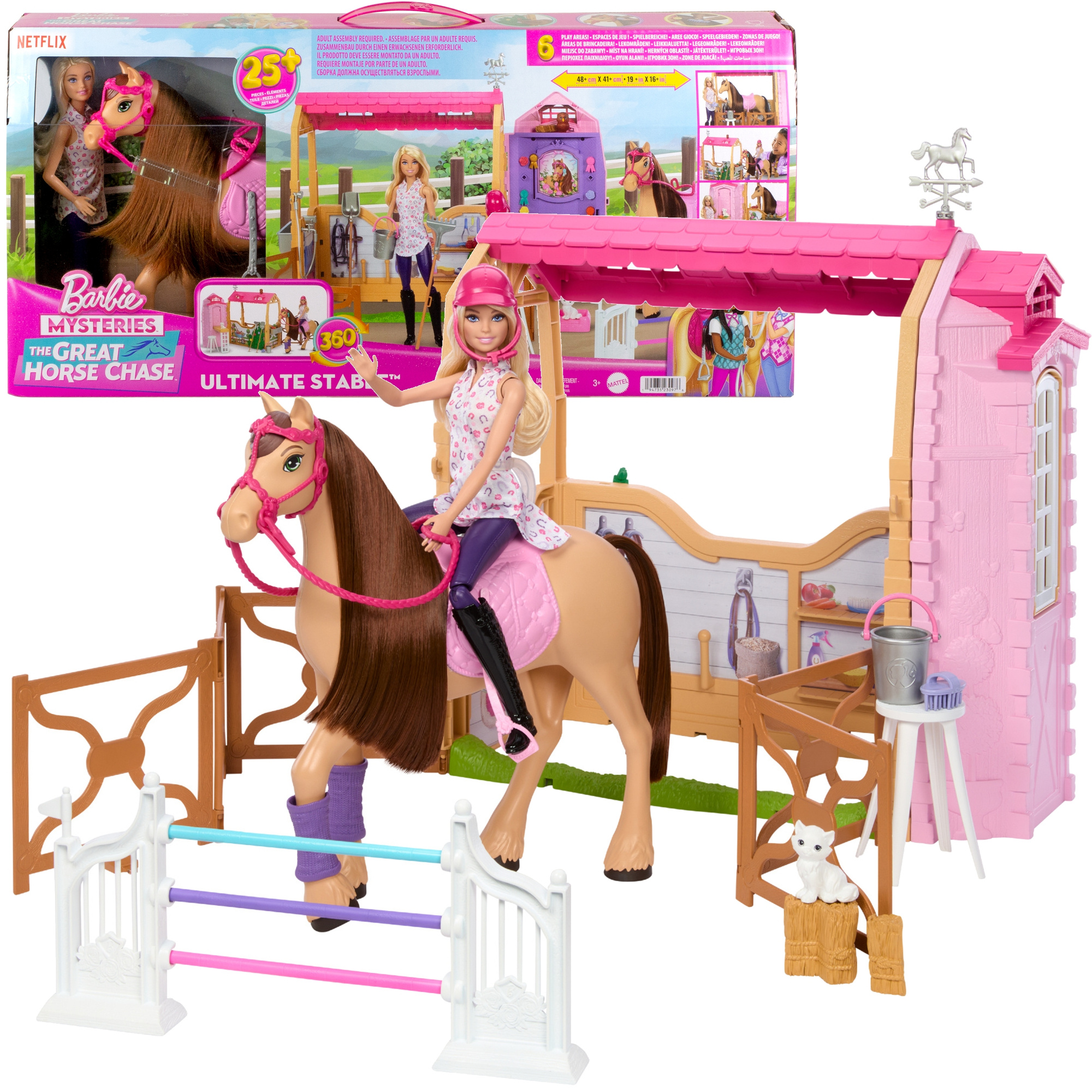 Barbie Zestaw z lalką i koniem Stadnina Marzeń Barbie Mysteries Wielki Pościg Konny z 25 elementami