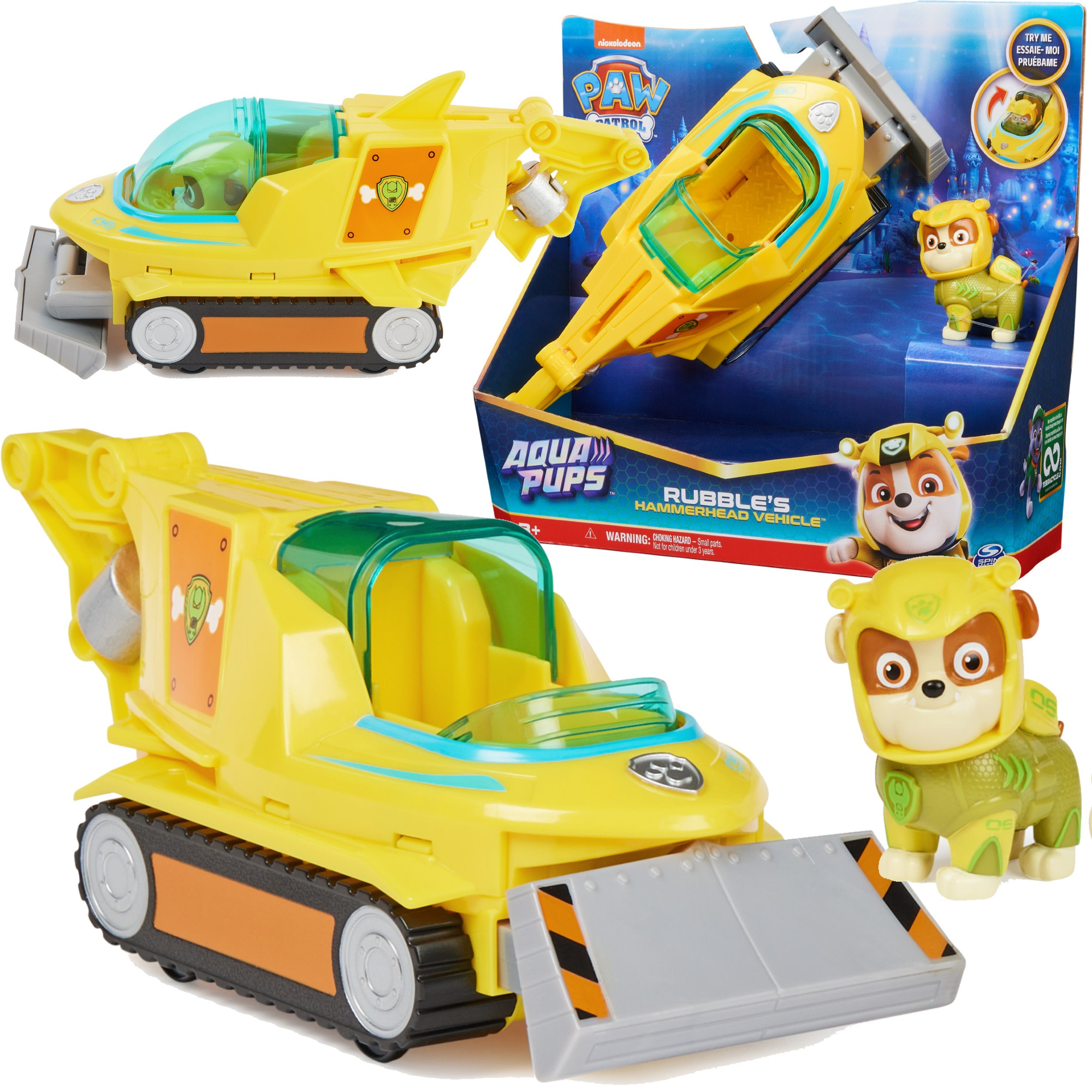 Psi Patrol Rubble Aqua Pups Wodne Pieski Pojazd podwodny Hammerhead + figurka (1 szt.)