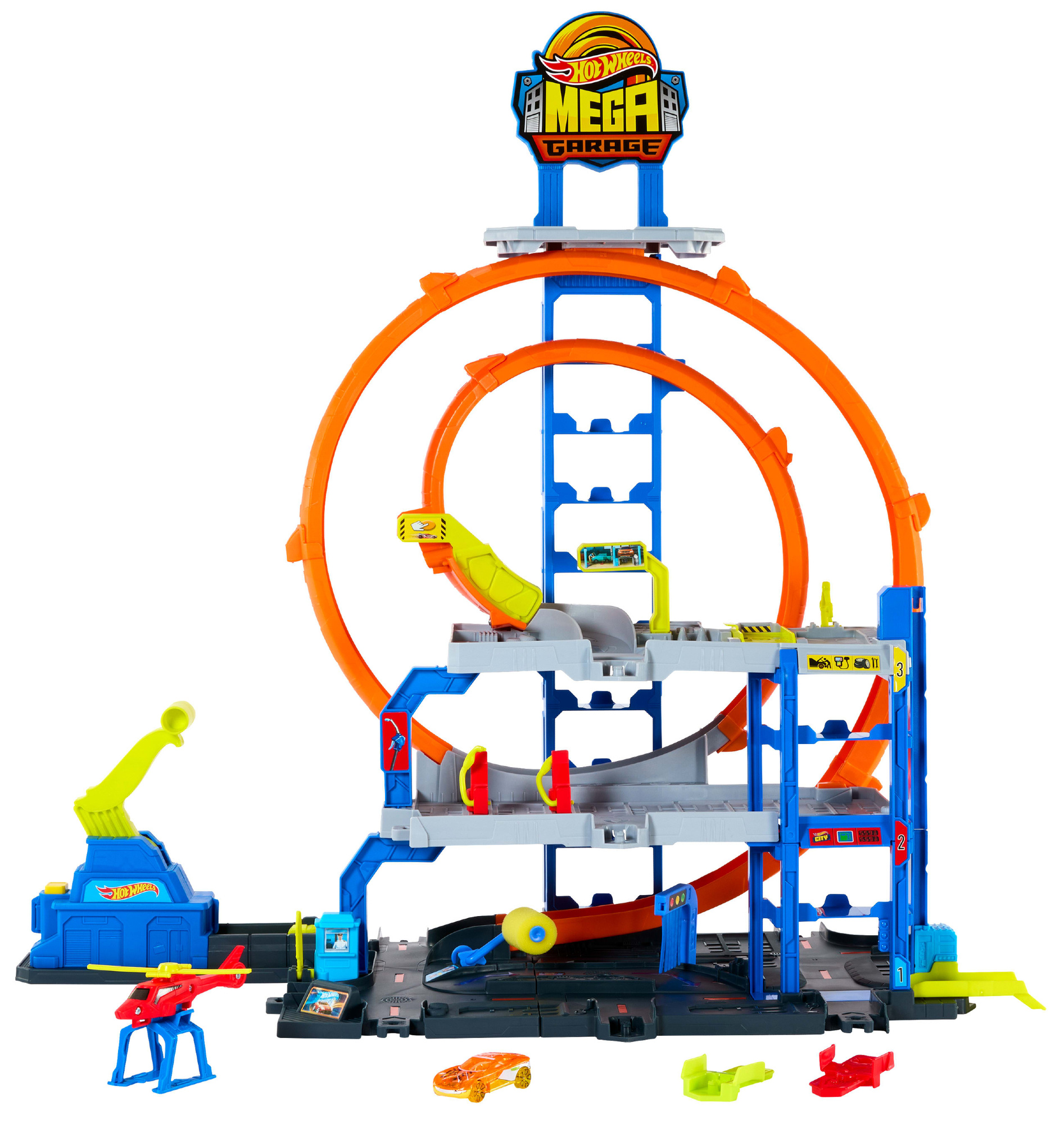 - Hot Wheels Speed Snap Mega Garaż Gigapętla to wielopoziomowy zestaw torów z garażem. Garaż pomieści aż 37 samochodów w skali 1:64, co czyni go idealnym miejscem zarówno do przechowywania kolekcji, jak i do rozgrywania emocjonujących wyścigów.
