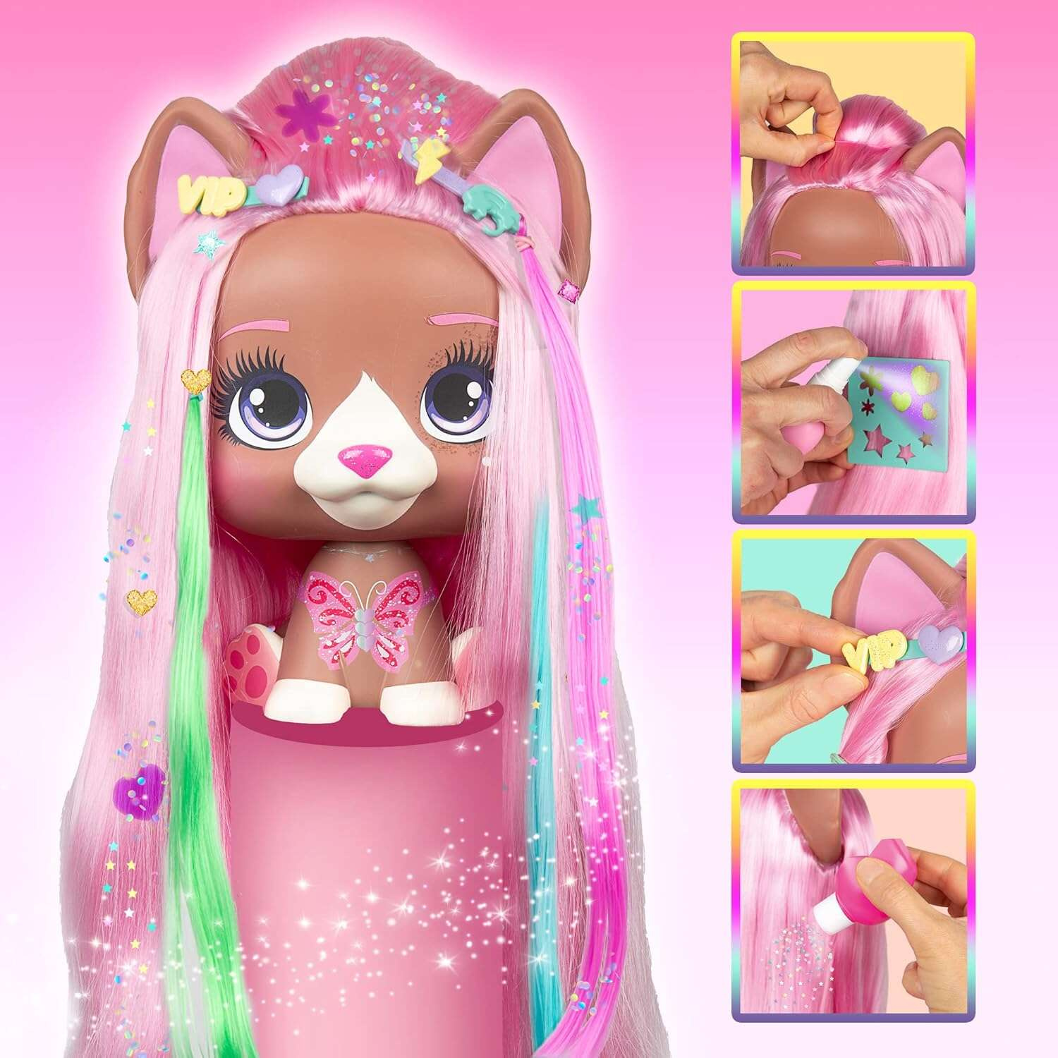 - Pochodzi z serii uroczych figurek piesków I Love Vip Pets, które mają długie kolorowe włosy oraz zestaw akcesoriów do ich czesania i stylizowania.