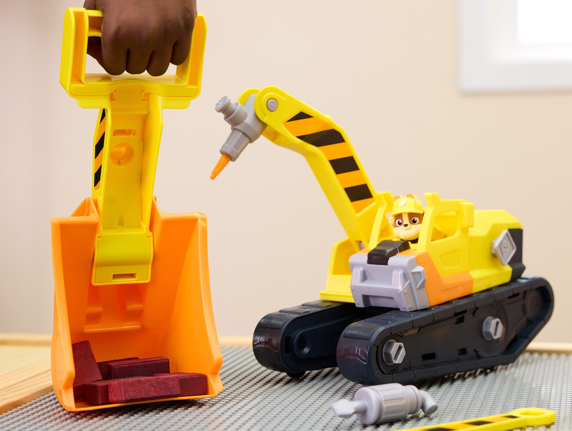 Ten produkt to model pojazdu budowlanego Rubble'a, jednego z głównych bohaterów popularnej serii i filmu jest wykonany z wysokiej jakości tworzywa sztucznego, co nadaje mu solidności i trwałości. Samochód posiada podnoszone ramie, do którego przyczepiona jest ruchoma łycha, którą w każdym momencie można odczepić od pojazdu i korzystać do woli. Natomiast druga część ramienia może posłużyć jako palnik spawalniczy. Rura wydechowa buldożera może także posłużyć jako śrubokręt, a w bocznej części pojazdu ukrył się płaski klucz.