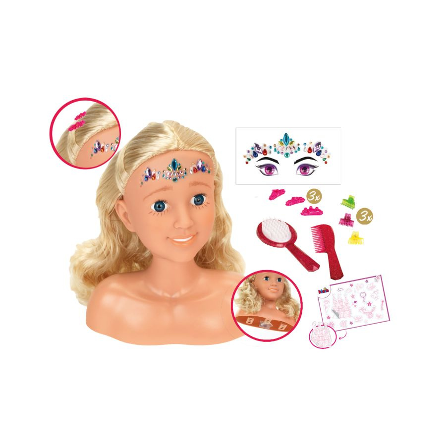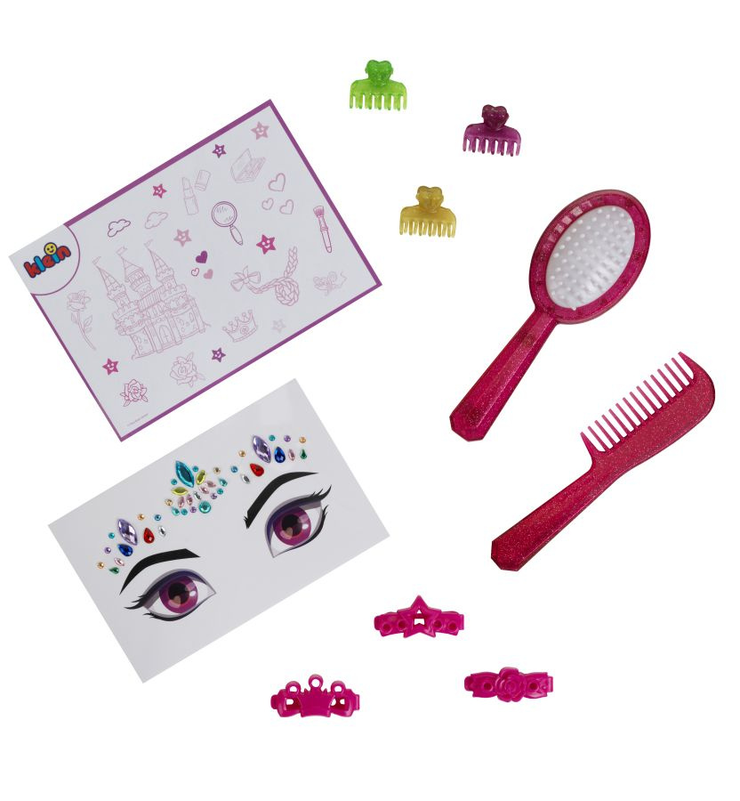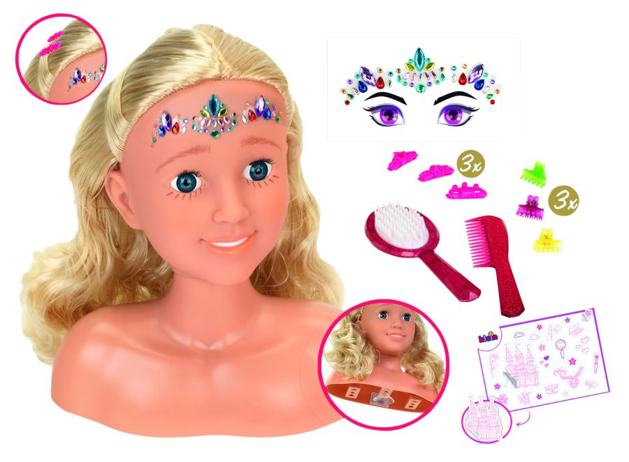 W zestawie z głową znajdują się akcesoria do włosów (szczotka, grzebyk oraz spinki). Dołączone do zestawu dodatki pozwolą każdej małej stylistce na stworzenie wielu różnych fryzur, jedynym ograniczeniem tutaj, jest wyobraźnia dziecka.