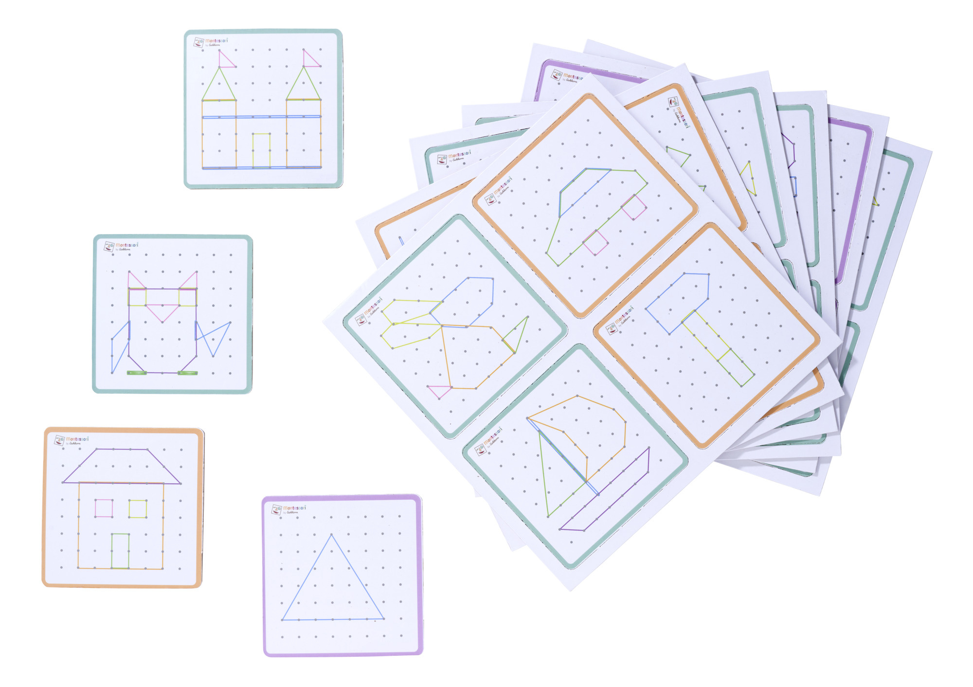 - W zestawie znajduje się tablica geometryczna, szablony oraz kolorowe gumeczki, które zapewnią wile godzin cudownej zabawy. Wymiary opakowania: 19,5 x 5 x 19,5 cm.