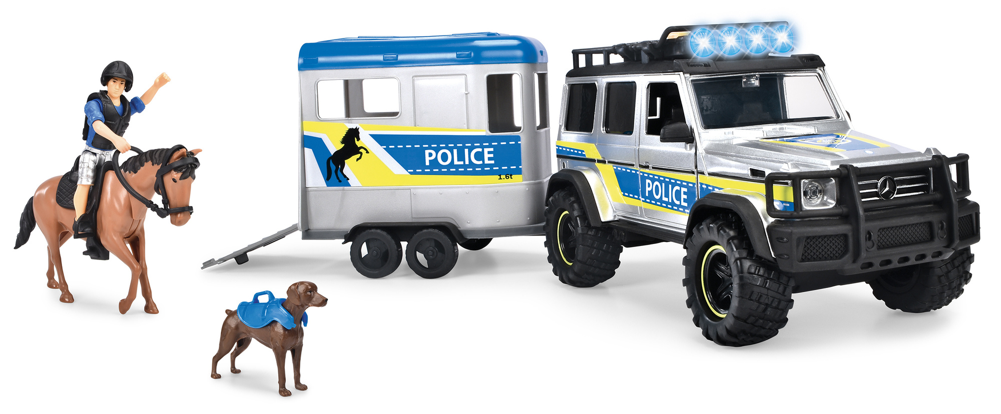 Dodatkowo w zestawie znajdują się biała przyczepka na policyjnego konia. Przyczepkę można przymocować do pojazdu za pomocą haka. Posiada ona plastikowe koła, dzięki którym przemieszczanie się jest łatwiejsze. Ponad to w zestawie znajduje się figurka policjanta, który może prowadzić pojazd bądź jeździć na koniu.
