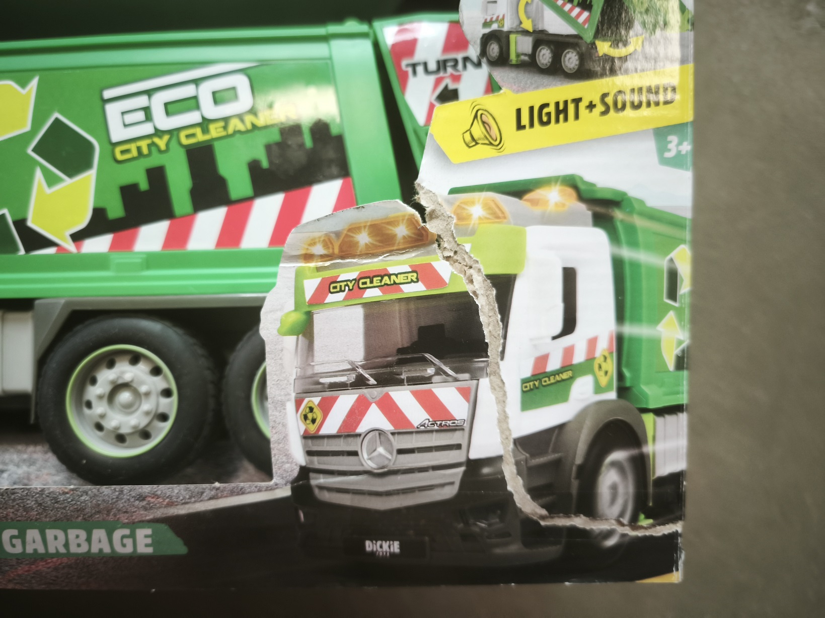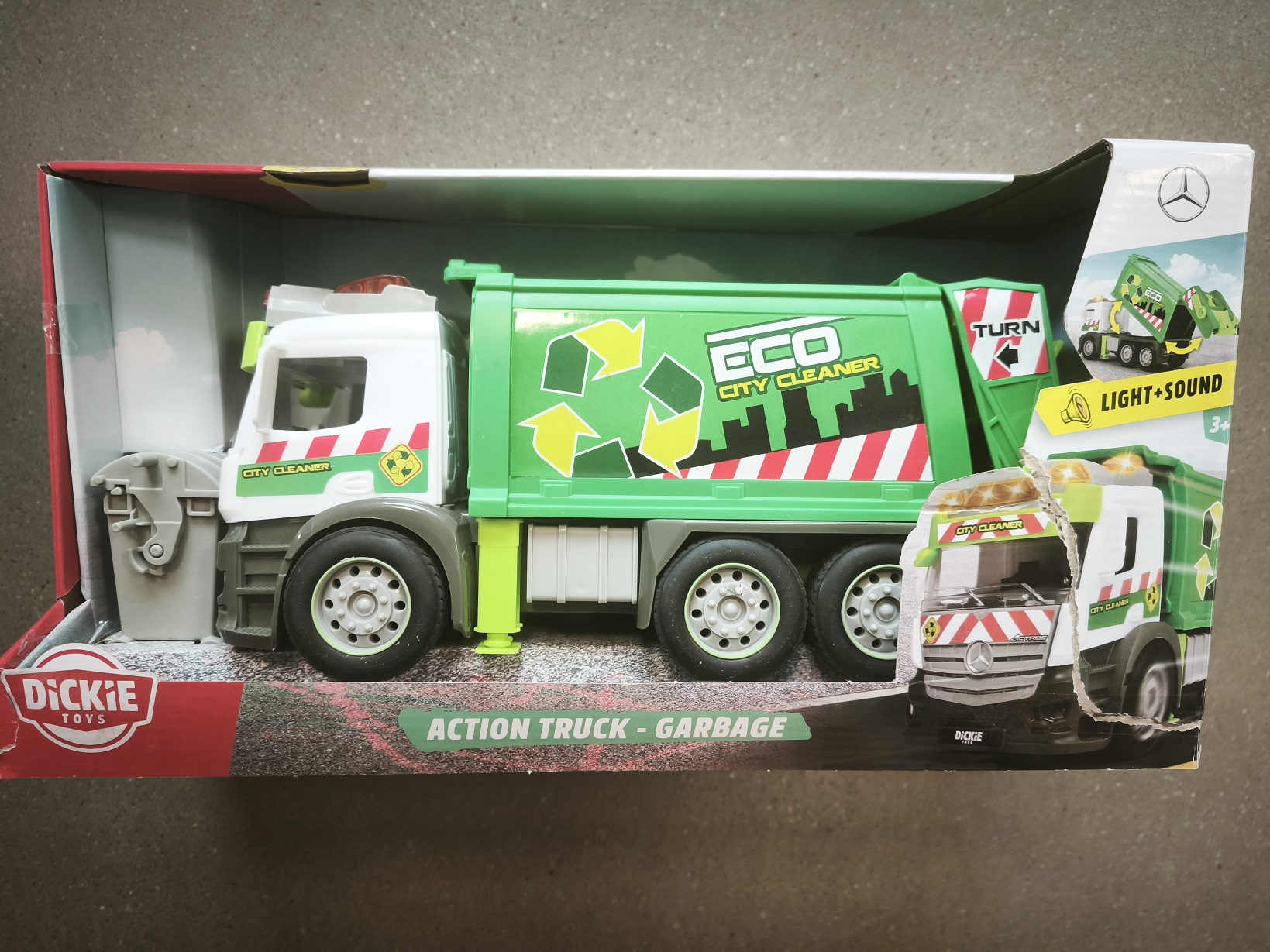 OUTLET Śmieciarka Eco Mercedes Benz + akcesoria światło/dźwięk WADLIWY