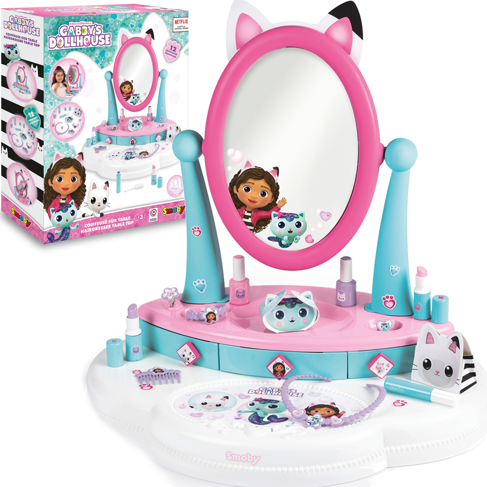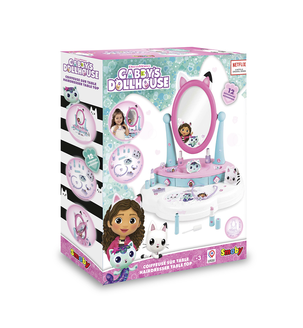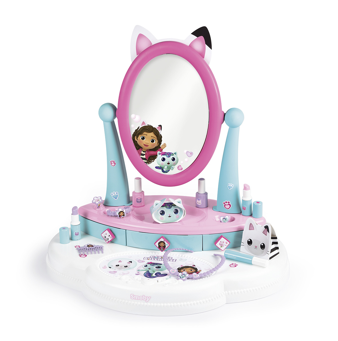 Wejdź do magicznego świata Kociego Domku Gabi i odkryj zabawę w odgrywanie ról z uroczą toaletką Studio od Smoby. Ten bajkowy zestaw łączy trzy ulubione światy dzieci - fryzjerstwo, pielęgnację paznokci i makijaż - dając niezliczone możliwości twórczej zabawy.