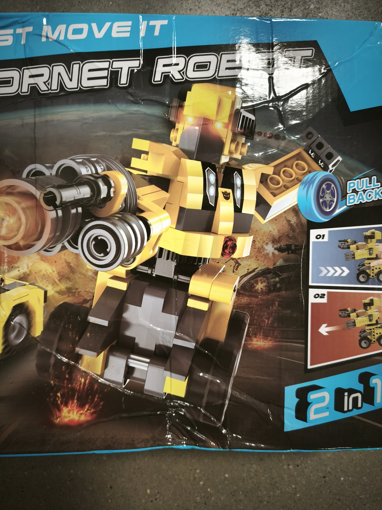 Zestaw składa się z 267 elementów i umożliwia samodzielne złożenie robota lub auta z napędem pull-back. Pojazdy są wykonane w żółto-szarych kolorach i posiadają 4 gumowe koła, które umożliwiają im poruszanie się po różnych powierzchniach. Stworzone zostały ze szczególną uwagą na detale, które zapewnią niesamowitą zabawę.