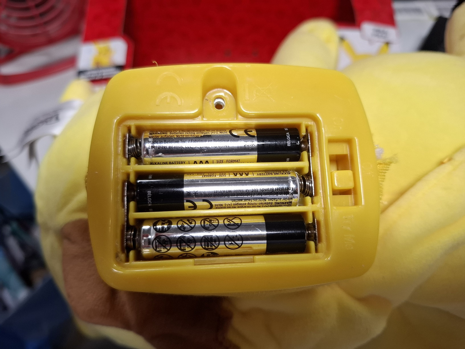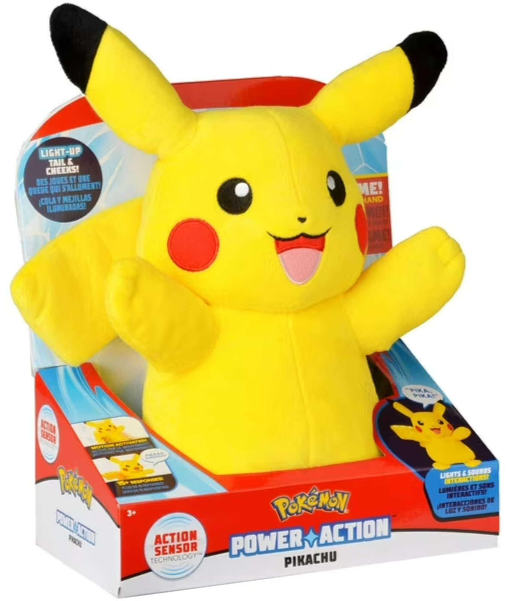 Maskotka interaktywna Pikachu, mówi i świeci. Po naciśnięciu lewej łapki pluszak wypowiada różne kwestie, które często pojawiają się w bajce. Prawa łapka uruchamia światełka na policzkach i ogonku, oraz dźwięk pioruna. Potrząśnięcie maskotki uruchamia power action!
