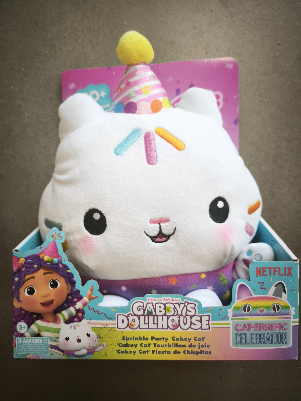 Cakey Cat jest ubrany w uroczą kreację tematyczną z okazji przyjęcia, a jego możliwości zachwycą każdego malucha!