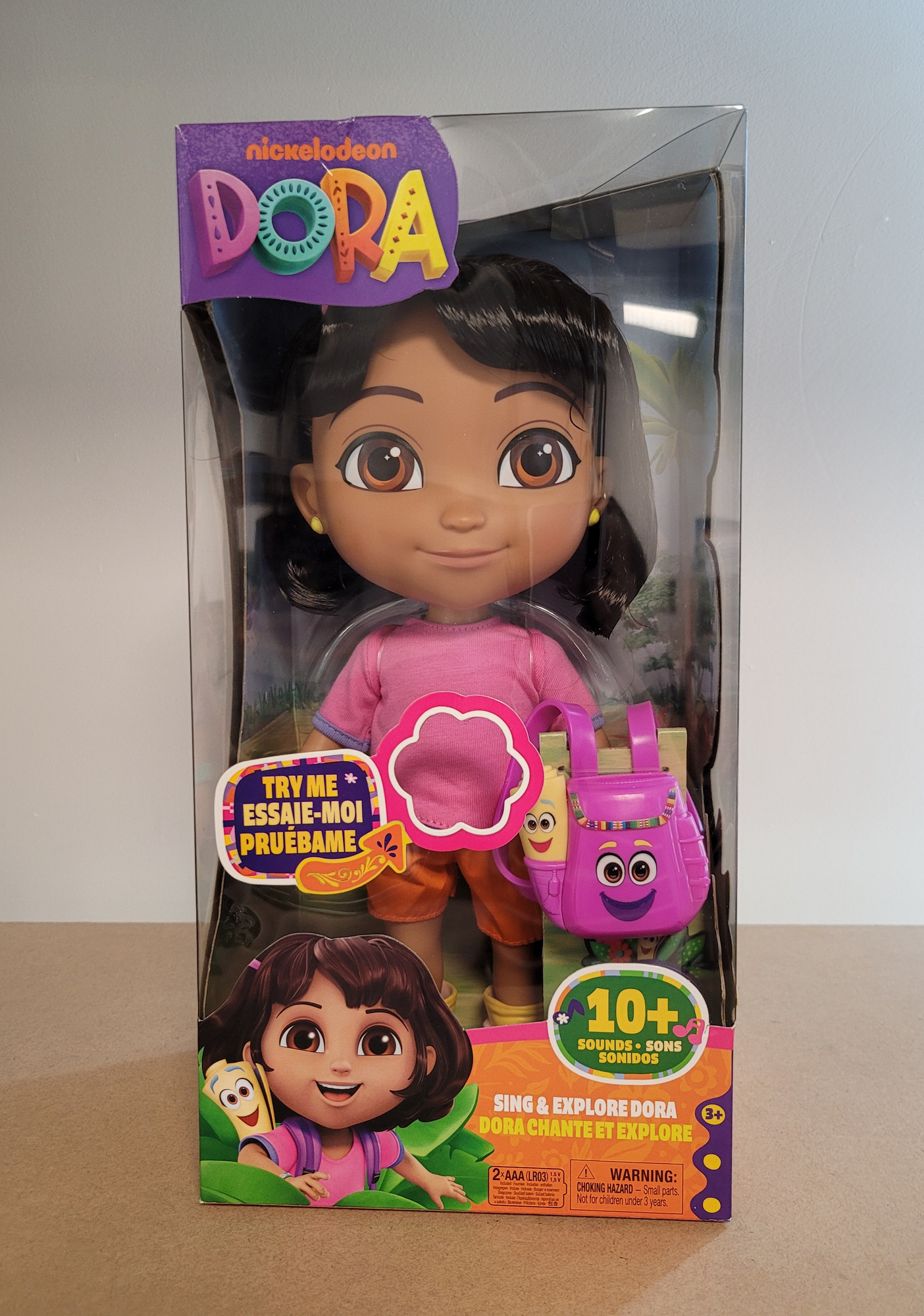 Przygody czekają z dużą lalką Dora Sing & Explore! Ta interaktywna lalka o wysokości 30,4 cm odtwarza ponad 10 dźwięków, w tym muzykę, efekty dźwiękowe i zwroty w języku angielskim, które przenoszą dzieci do świata bajki „Dora poznaje świat”.