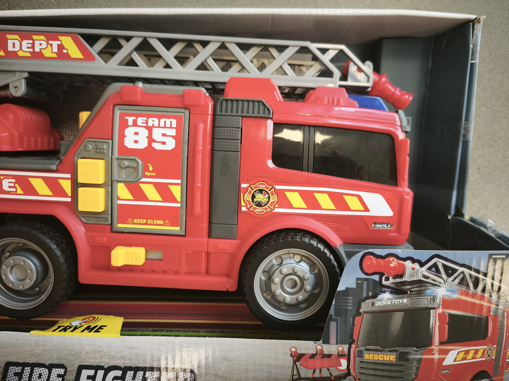 Wóz strażacki został stworzony przez cieszącą się dużym zainteresowaniem firmę Dickie Toys należącą do Simba Dickie Group, która od lat projektuje wysokiej jakości zabawki.