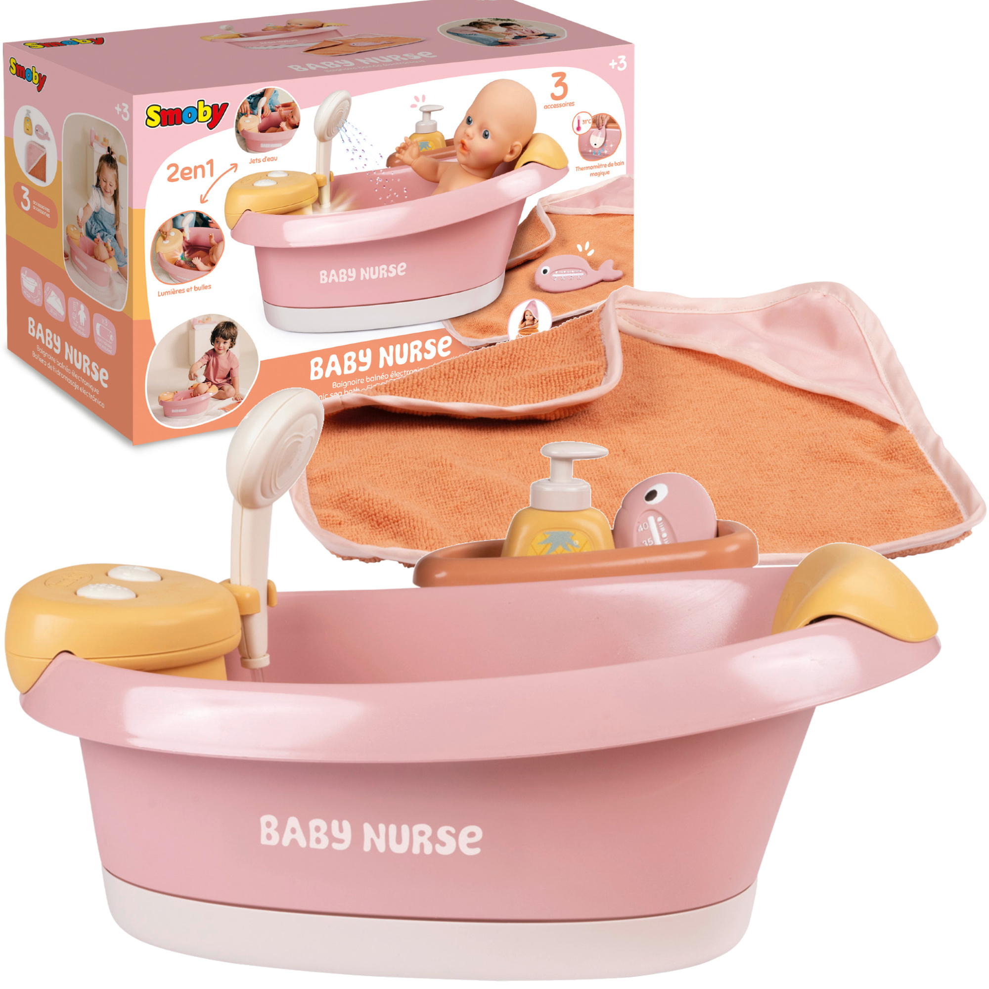 - Wanienka Smoby Baby Nurse to doskonały zestaw do zabawy w odgrywanie ról, który pozwala dzieciom wcielić się w troskliwych rodziców swoich ukochanych lalek. Ze słuchawki prysznicowej wypływa woda, a dodatkowo można włączyć podświetlenie i bąbelki!