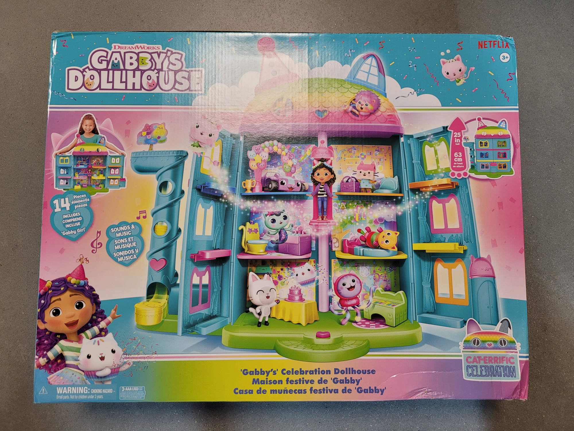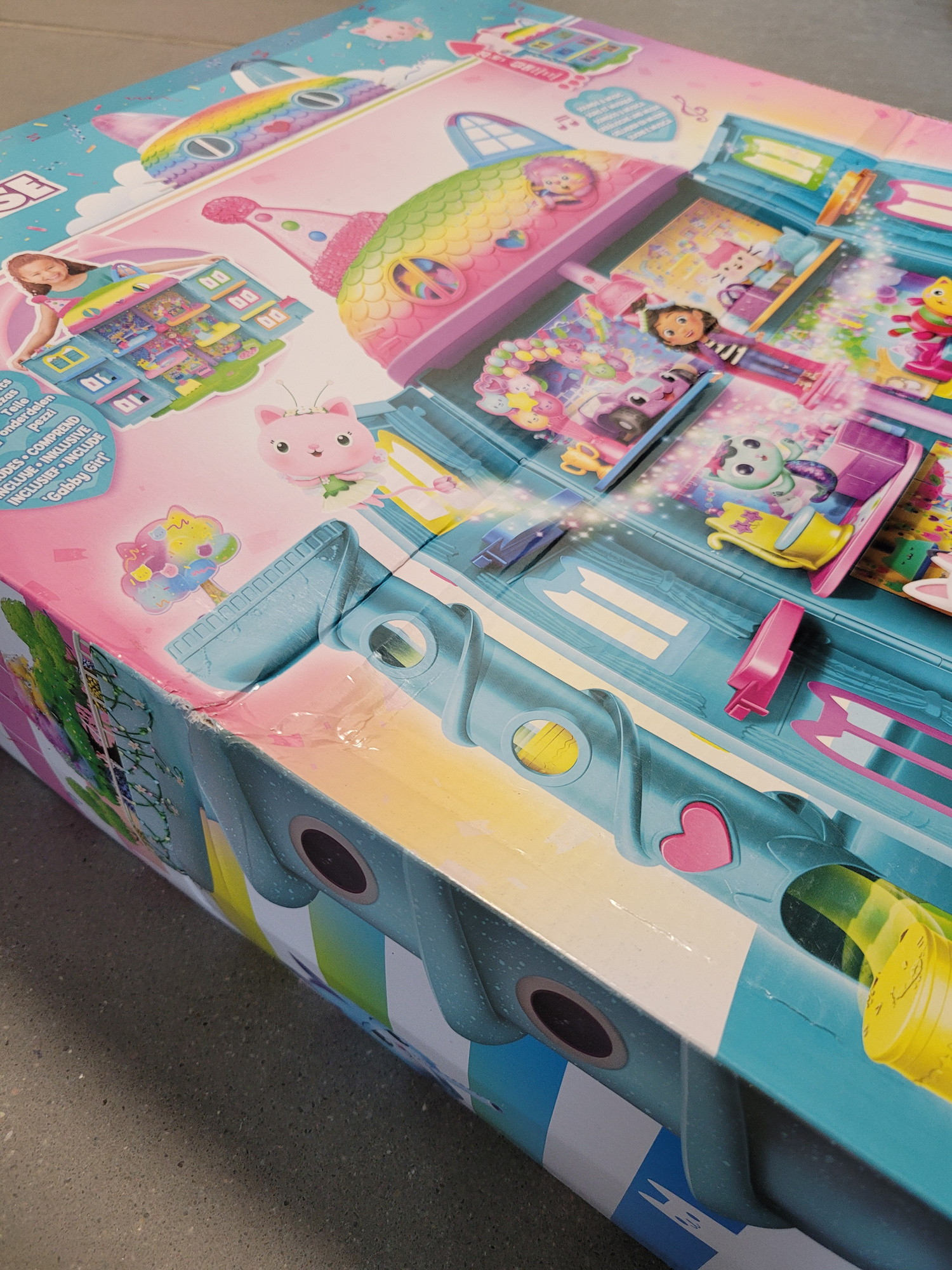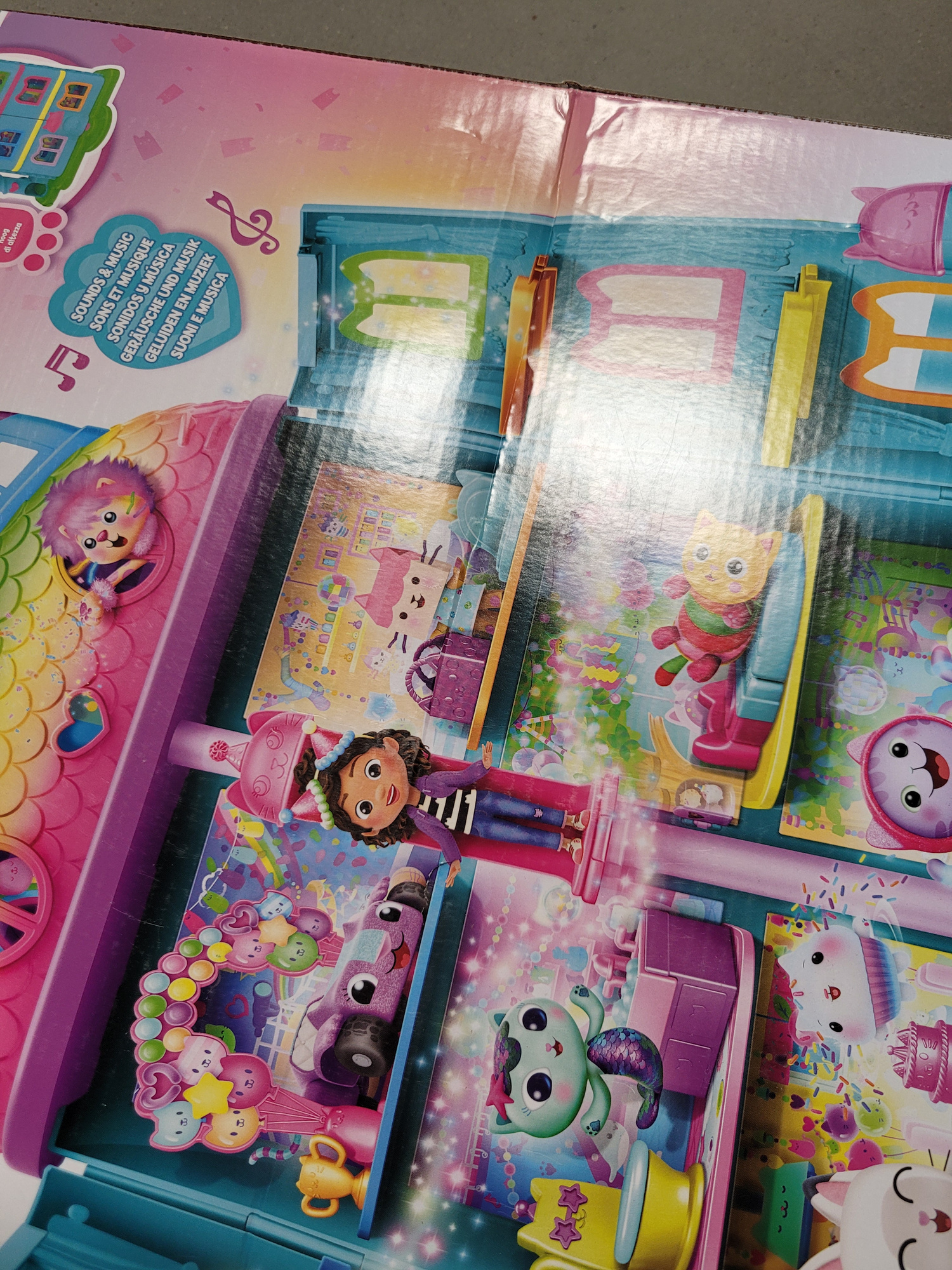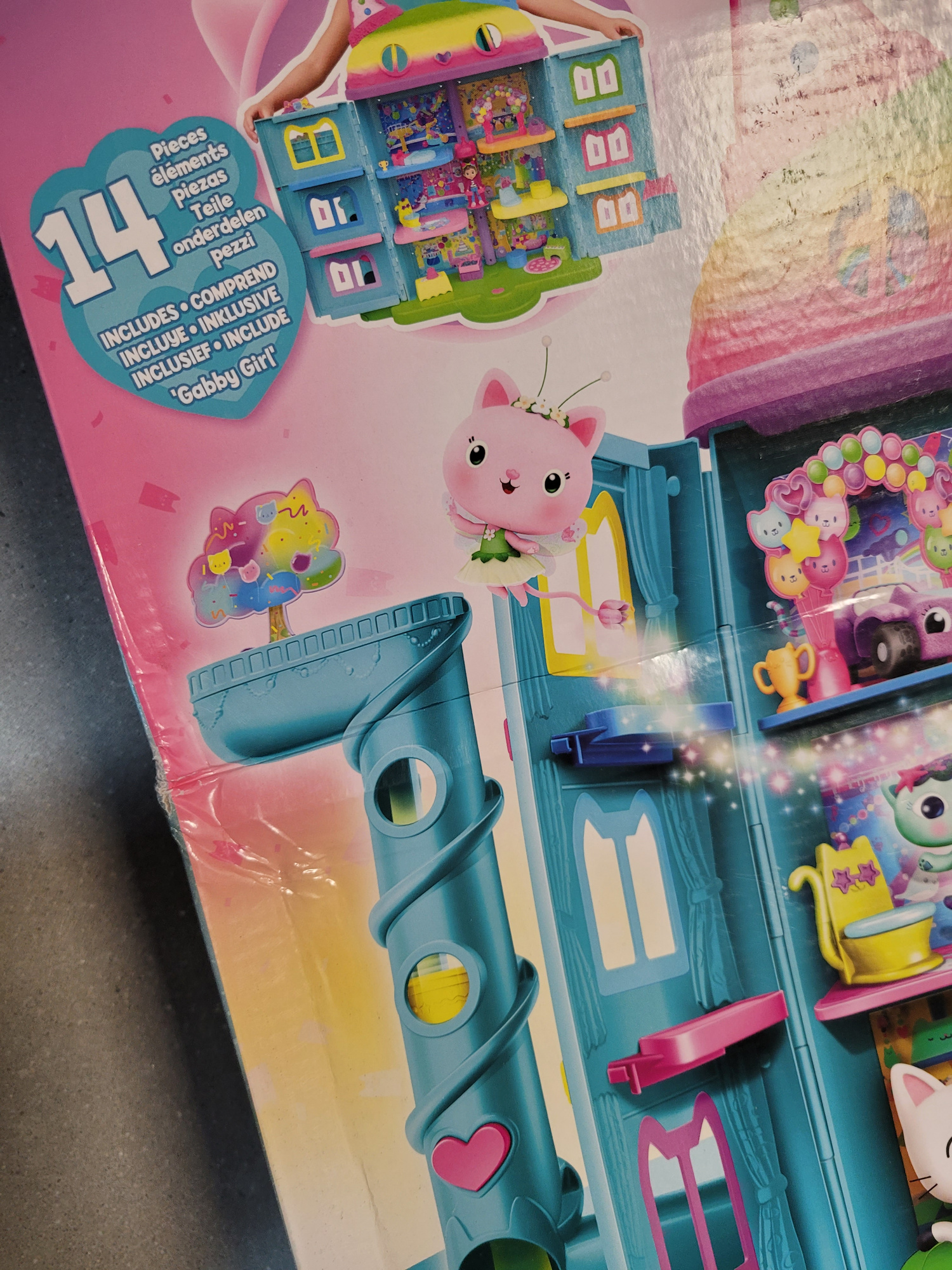 OUTLET Koci Domek Gabi Wielki tęczowy dom z windą i laleczką Gabby's Celebration Dollhouse USZKODZONE OPAKOWANIE