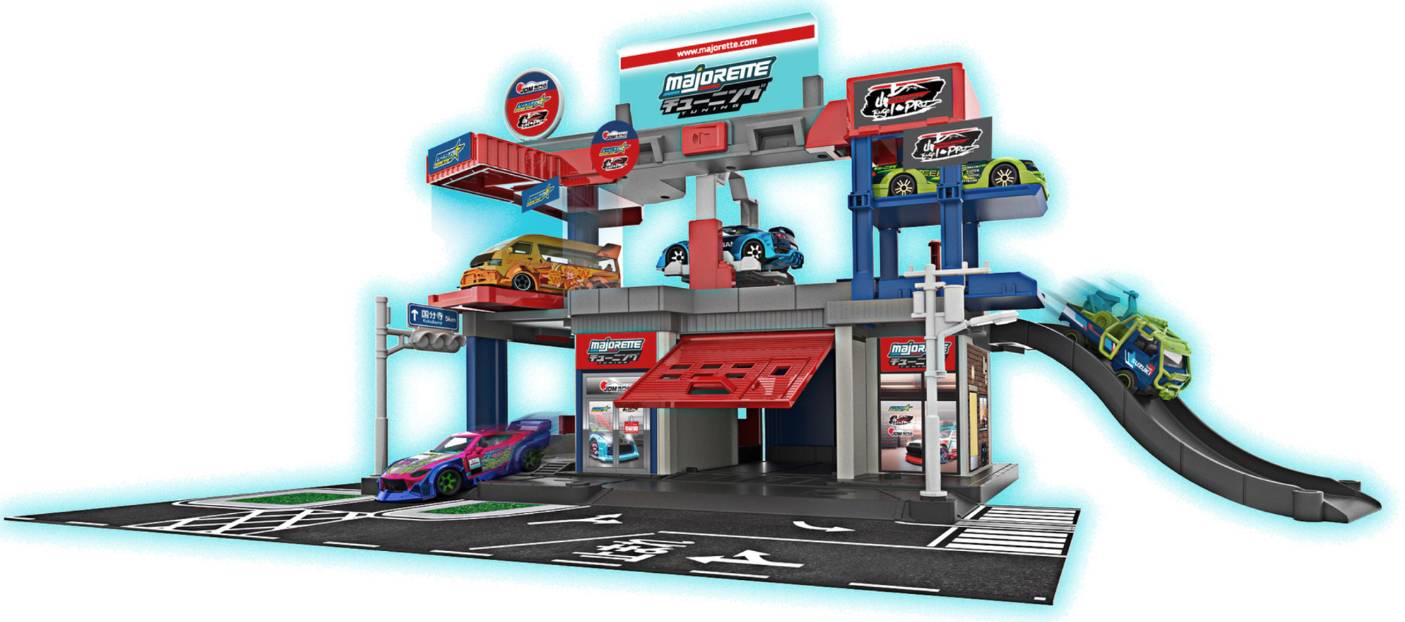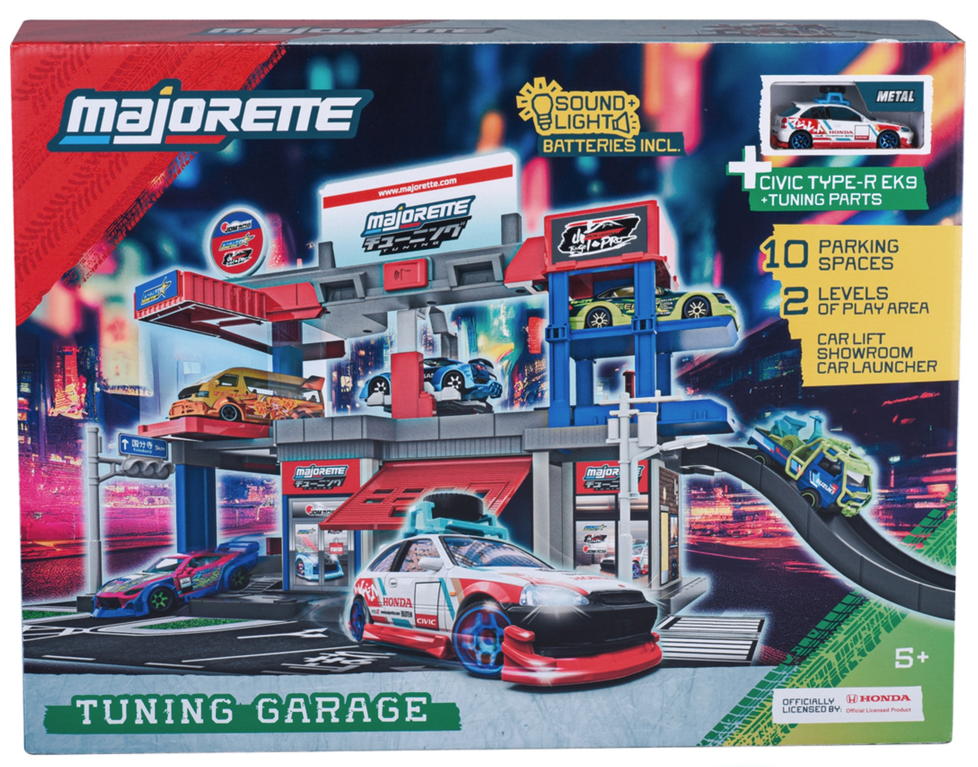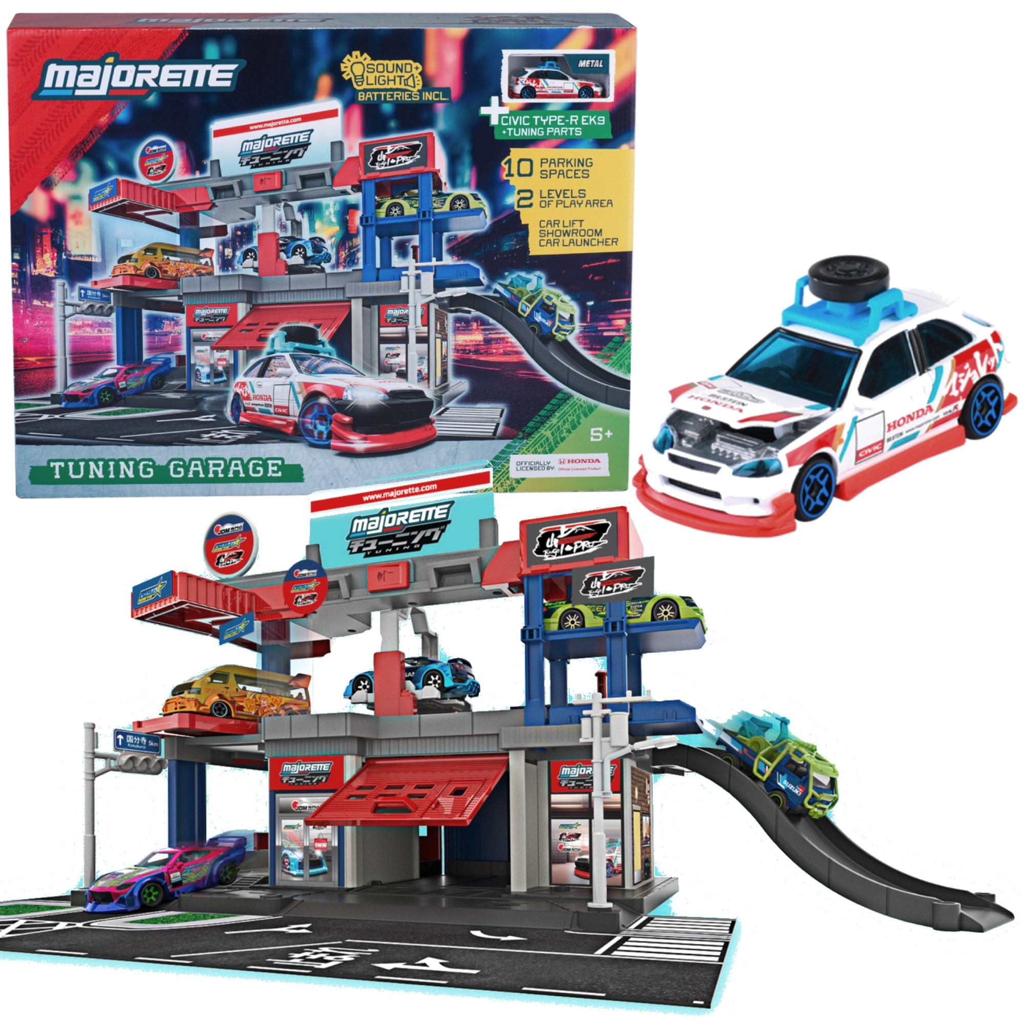 Zabawka ta to wspaniały zestaw składający się z 2-poziomowego garażu do Tuningu oraz autka wyścigowego marki Honda Civic. Na wyższym piętrze znajduje się serwis do tuningu, gdzie dzieci mogą ulepszać swoje wyścigówki. Całość została dodatkowo wyposażona w windę oraz 10 miejsc parkingowych. Między piętrami znajdują się rampy, po których pojazdy mogą wjeżdżać oraz szybciej wyjeżdżać z garażu. Na samym dole zabawki przyłączona została imitacja prawdziwej ulicy oraz sklepu z ulepszeniami do aut. Ponad to garaż posiada czerwony przycisk, który po naciśnięciu ukaże światła oraz odtworzy dźwięki charakterystyczne dla takich miejsc.