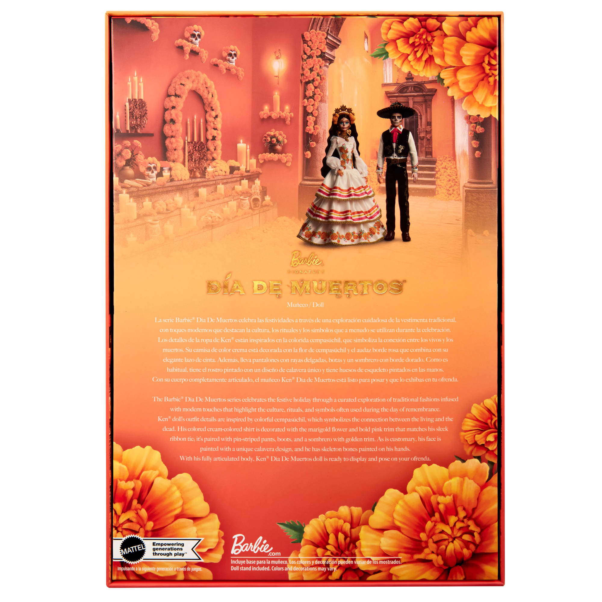 Ken ubrany jest w typowy strój Dia de Muertos, przybierany przez mężczyzn w czasie trwania święta zmarłych . Biała koszula wyszywana kolorowymi kwiatami przy rękawach i szyi. brązowa kamizelka ze złotymi kwiatami, brązowe spodnie z dodatkami złotymi po bokach, brązowy pas i kapelusz.