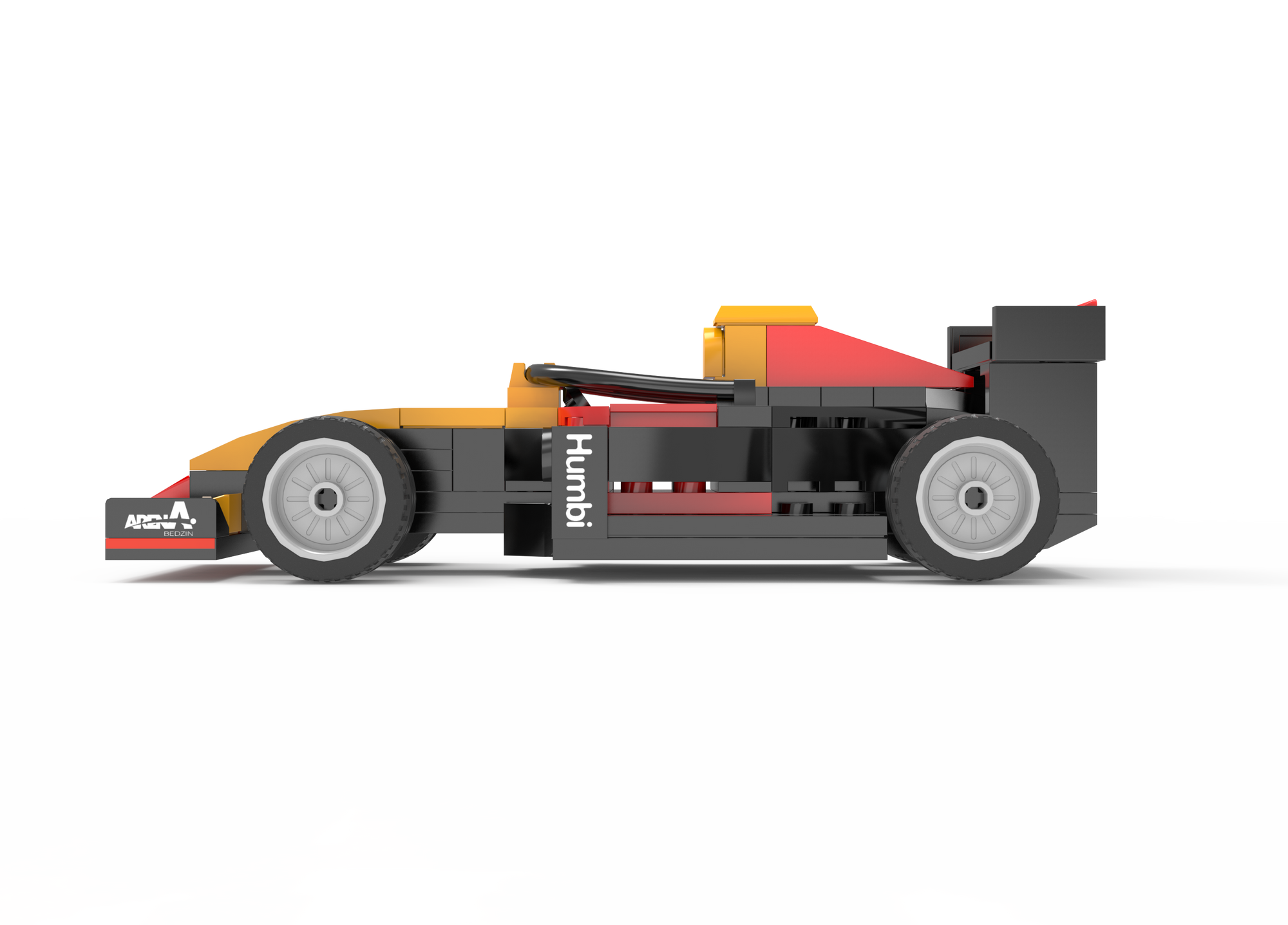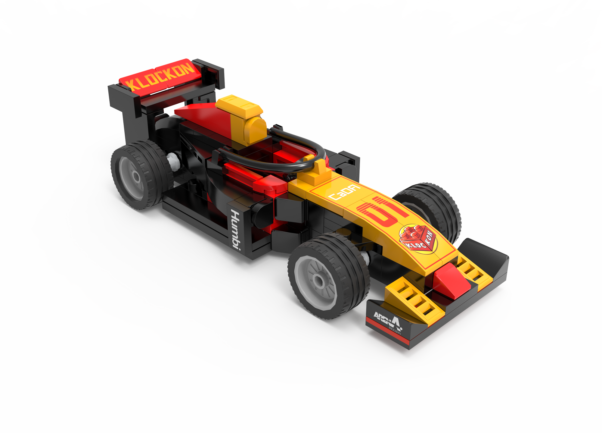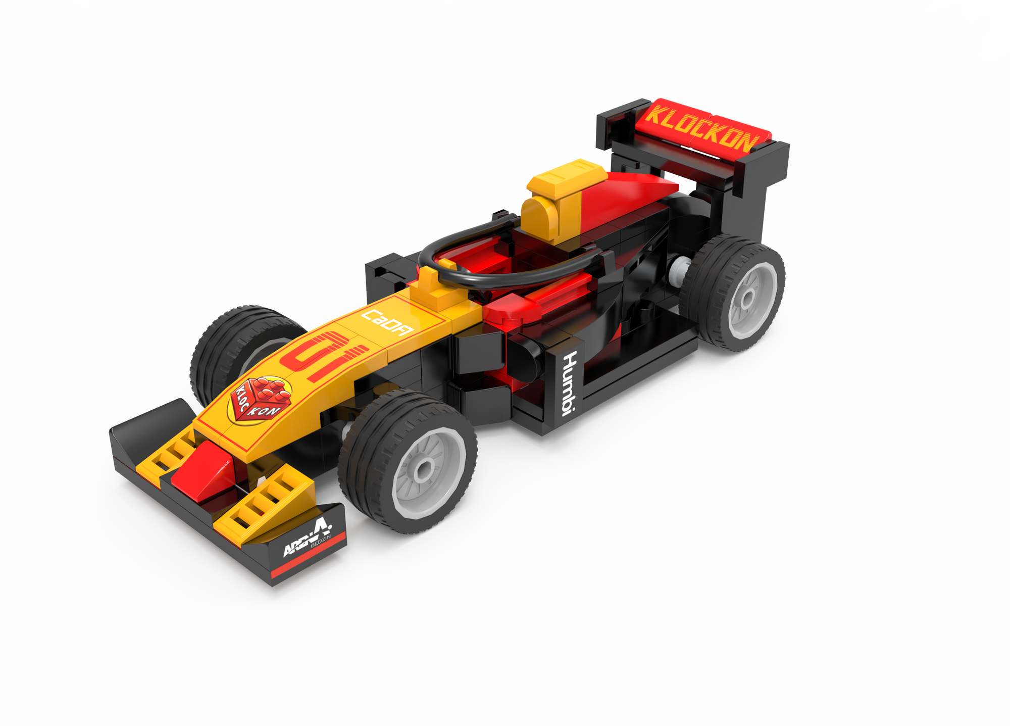 - Zestaw składa się z 123 elementy i umożliwia samodzielne złożenie statycznego modelu pojazdu wyścigowego. Wyposażony został w 4 koła, które umożliwiają mu poruszanie się po płaskich powierzchniach. Samochód ma żółto-czerwoną karoserię.