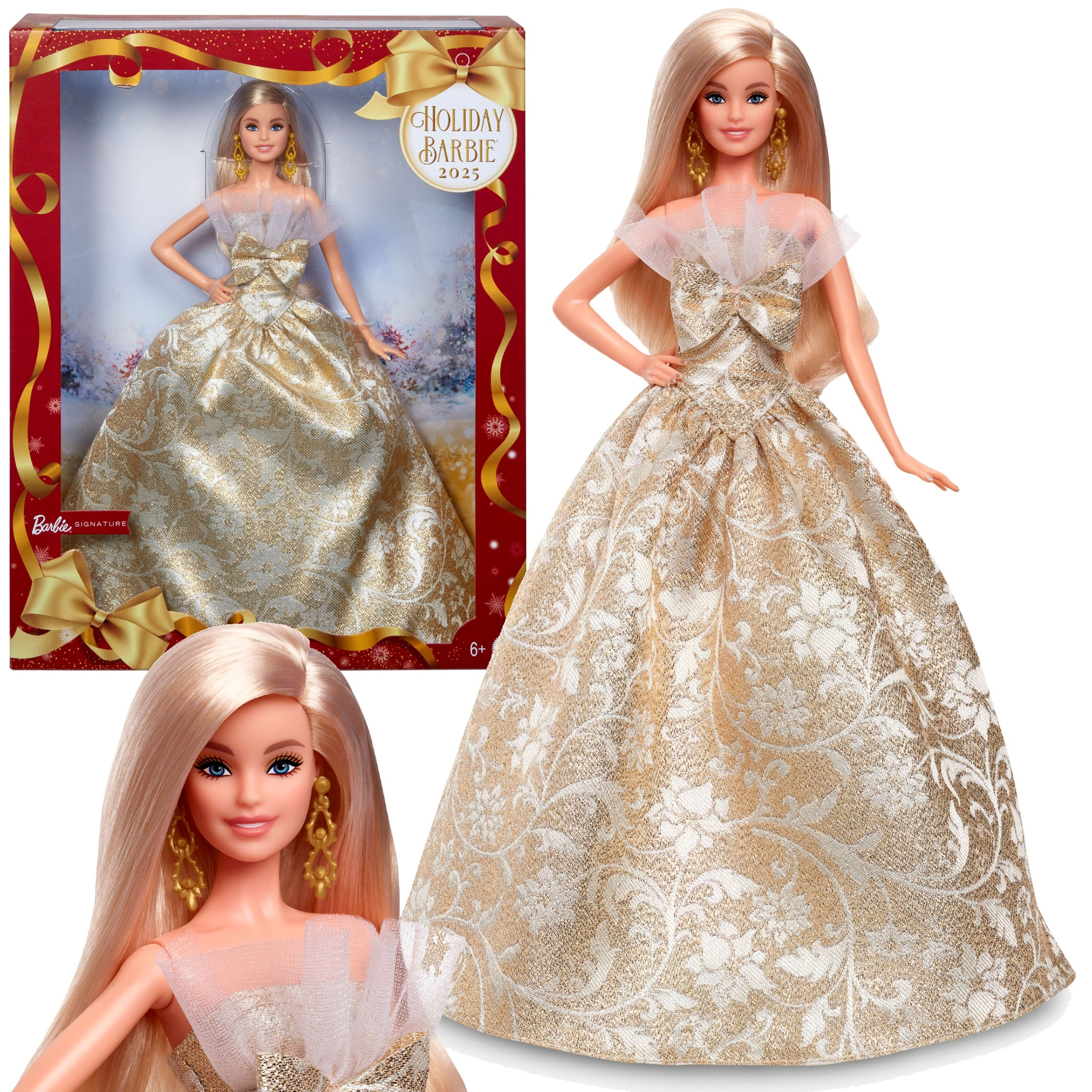 Barbie Lalka Kolekcjonerska Signature Holiday Joyeux Noel Złota Sukienka 6+