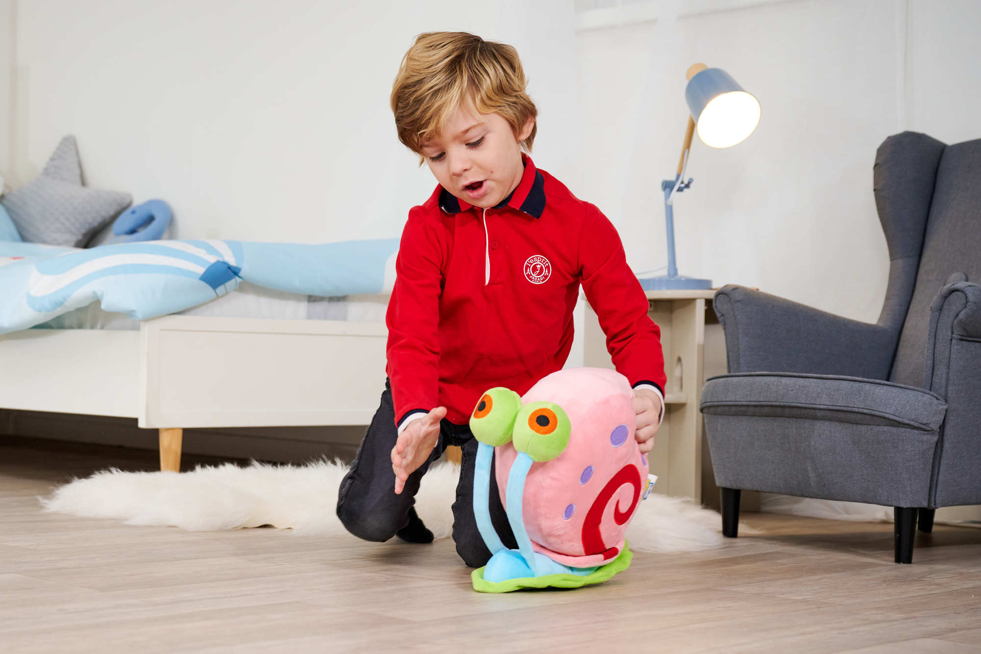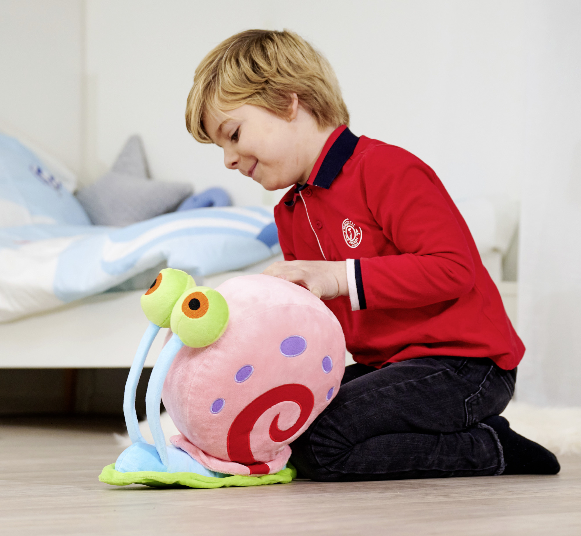 - Spongebob Maskotka Gacuś - pluszak kolorowy ślimak domowy 30 cm. Zabawka bez ograniczeń wiekowych.