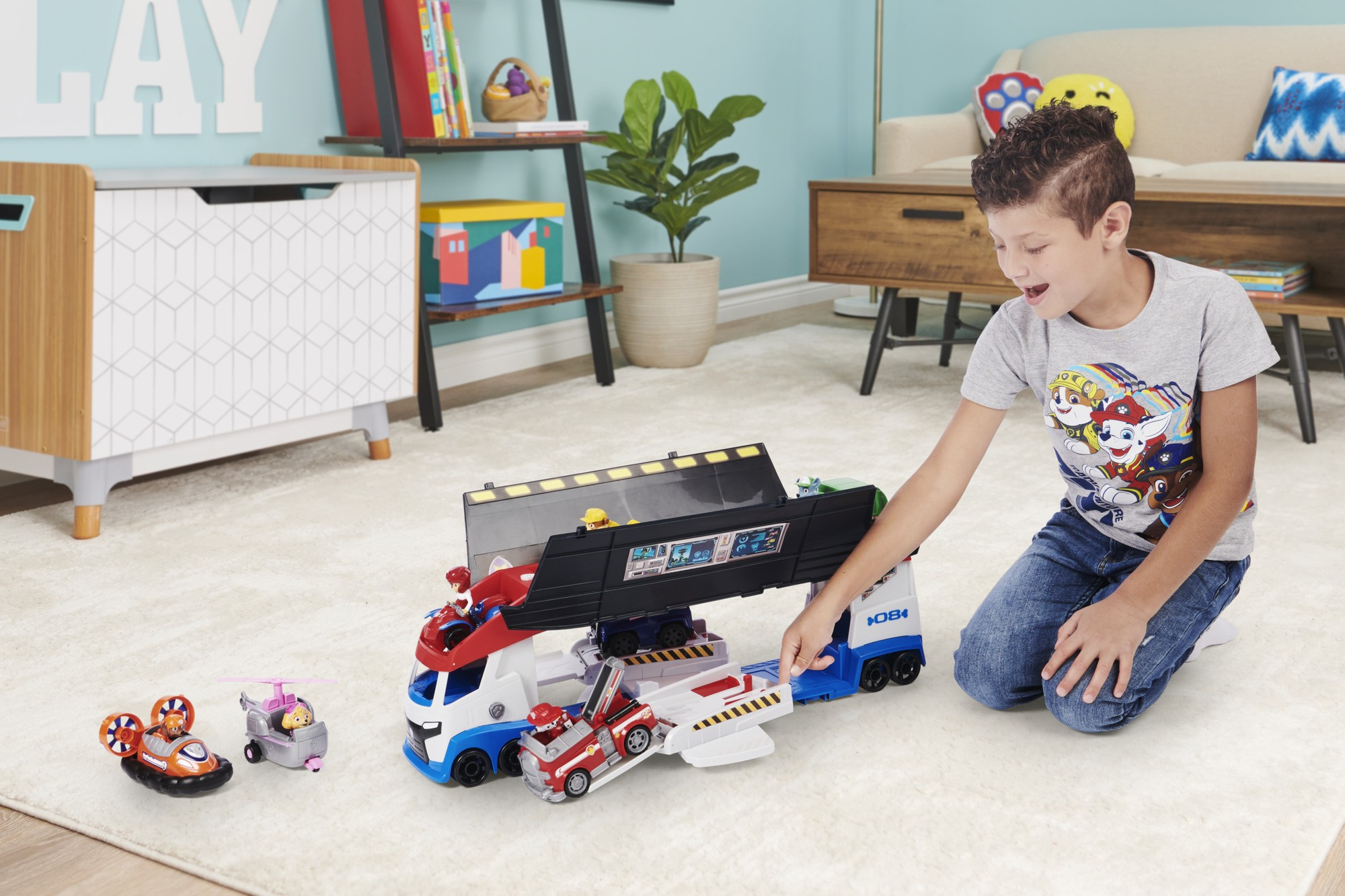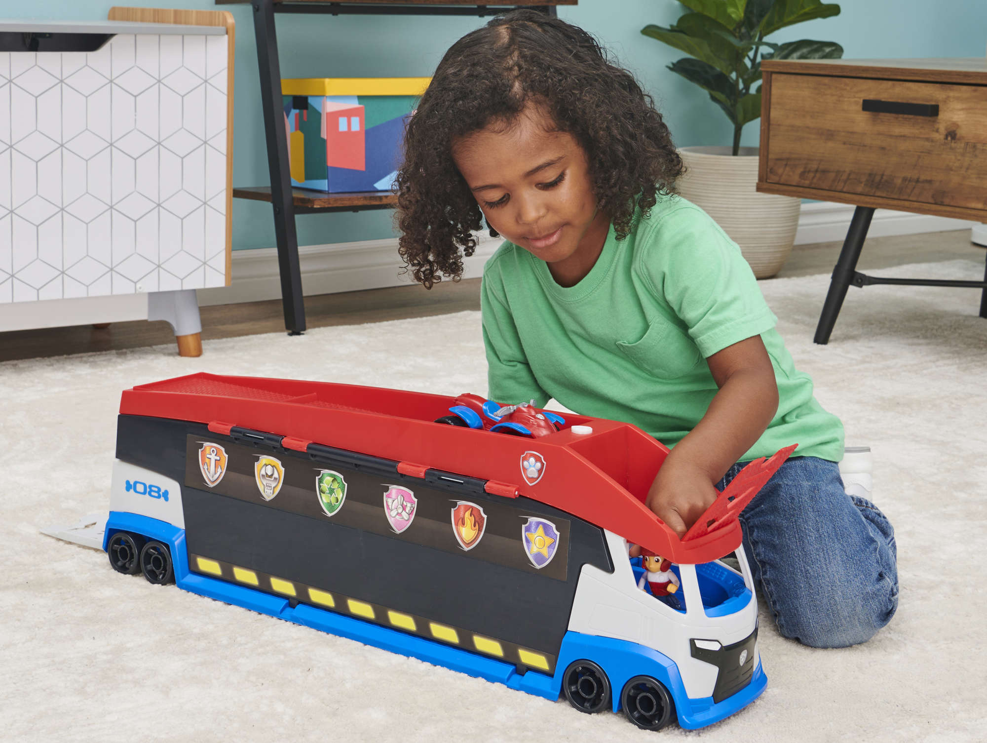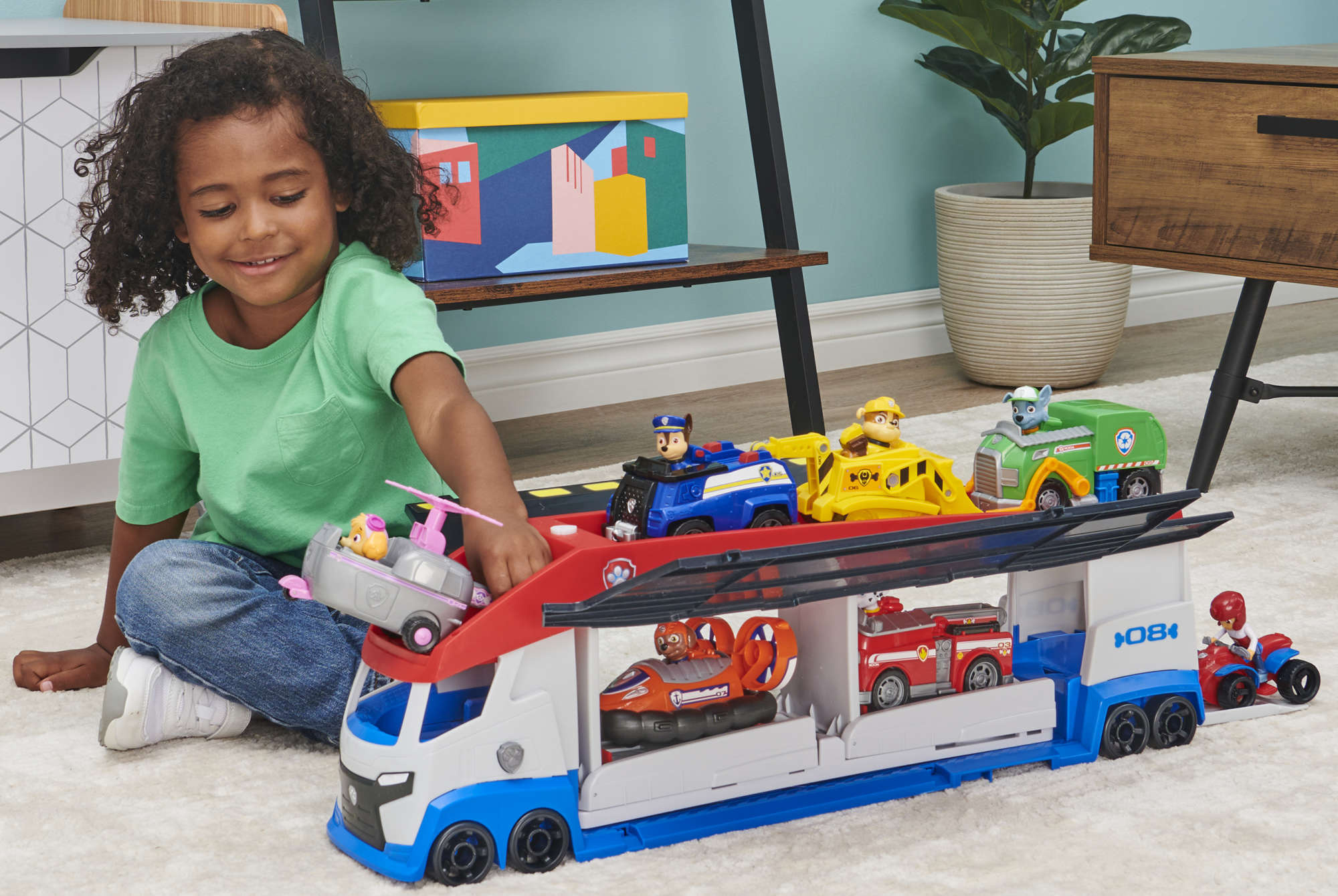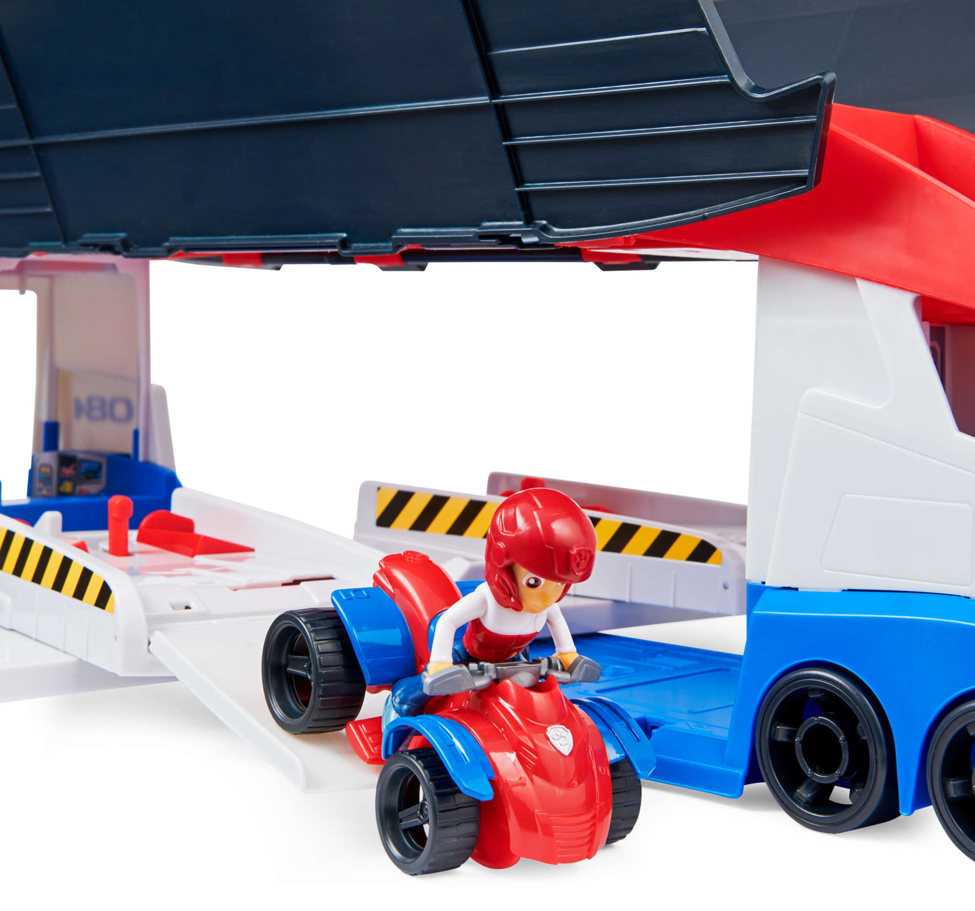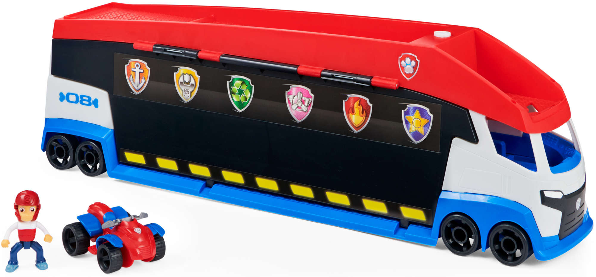 - Zestaw, na który składa się ogromna ciężarówka transportująca oraz figurka Rydera i jego quad, z serii zabawek Psi Patrol od Spin Master.