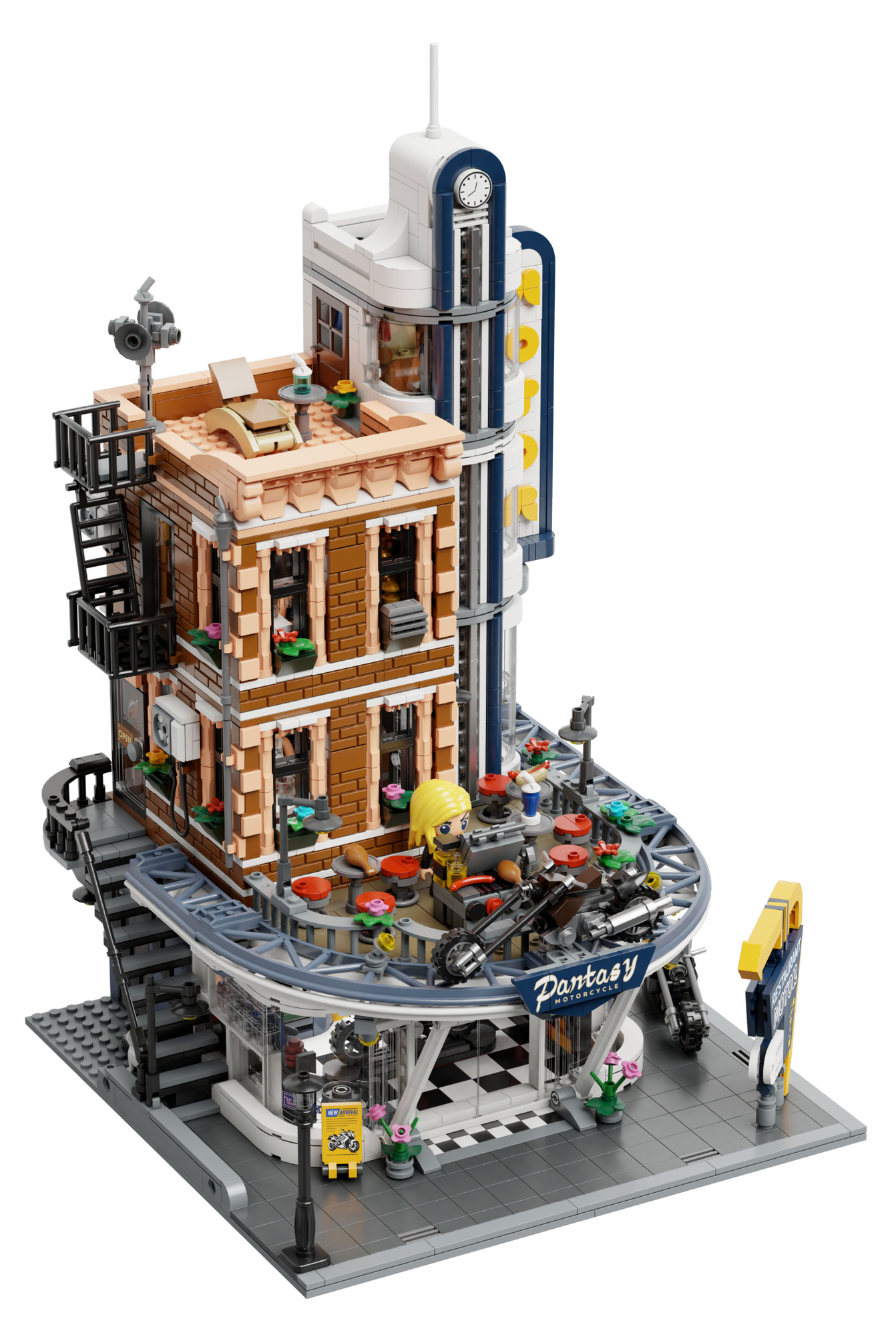 Budynek charakteryzuje się pełnym detali wykończeniem, z elementami nawiązującymi do motoryzacji. Dodatkowo dbałość o szczegóły takie jak stół bilardowy, wymienne części do pojazdów czy też motocykle zapewnią konstrukcji realizmu. Piękne figurki, takie jak czterech motocyklistów i pracownik oraz ozdobne detale sprawiają, że każdy egzemplarz jest unikatowy.