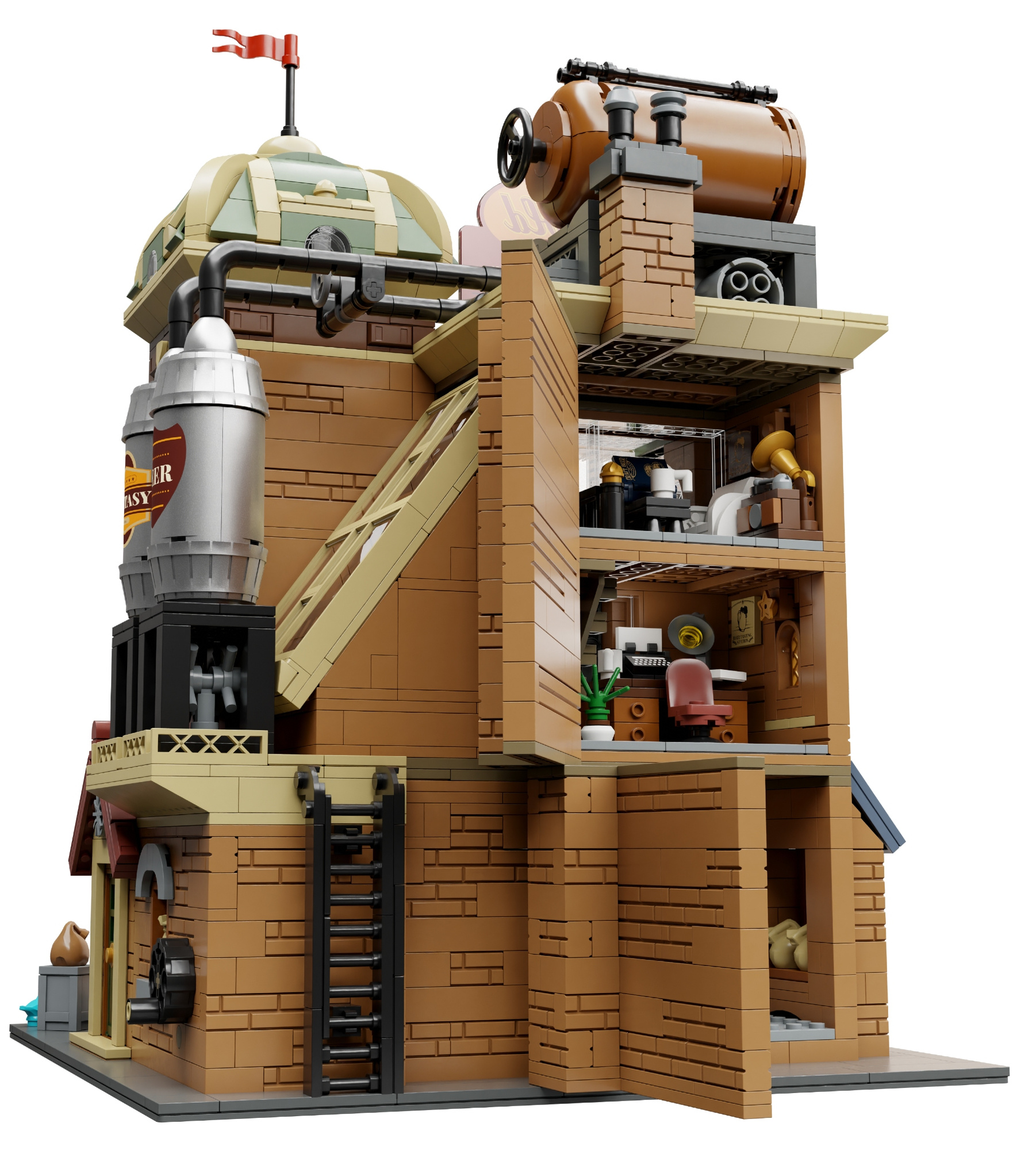Budynek charakteryzuje się pełnym detali wykończeniem, z elementami nawiązującymi do tradycyjnych motywów. Dodatkowo ruchome elementy takie jak taśmy produkcyjne, widna, czy otwierane drzwi zapewnią konstrukcji realizmu. Piękne figurki, takie jak właściciel, pracownik czy klient oraz ozdobne detale sprawiają, że każdy egzemplarz jest unikatowy.