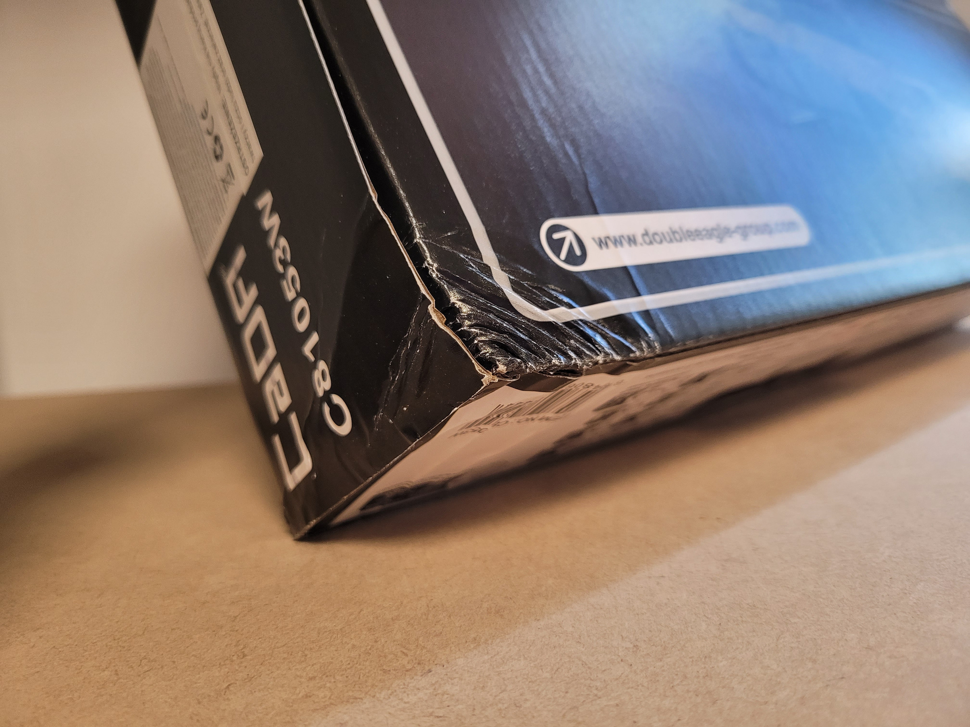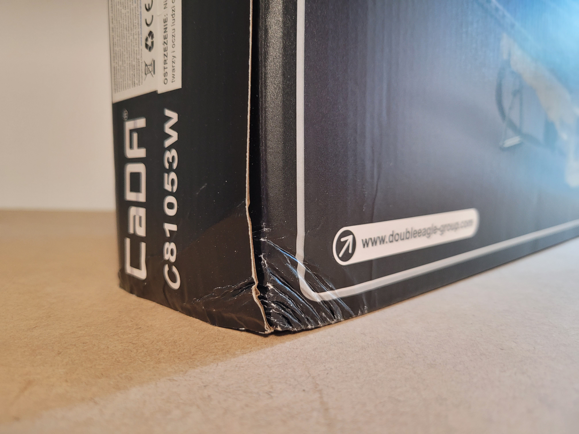 - produkt nowy; ze względu na ryzyko uszkodzenia w niektórych miejscach producent zabezpieczył opakowanie podwójną taśmą