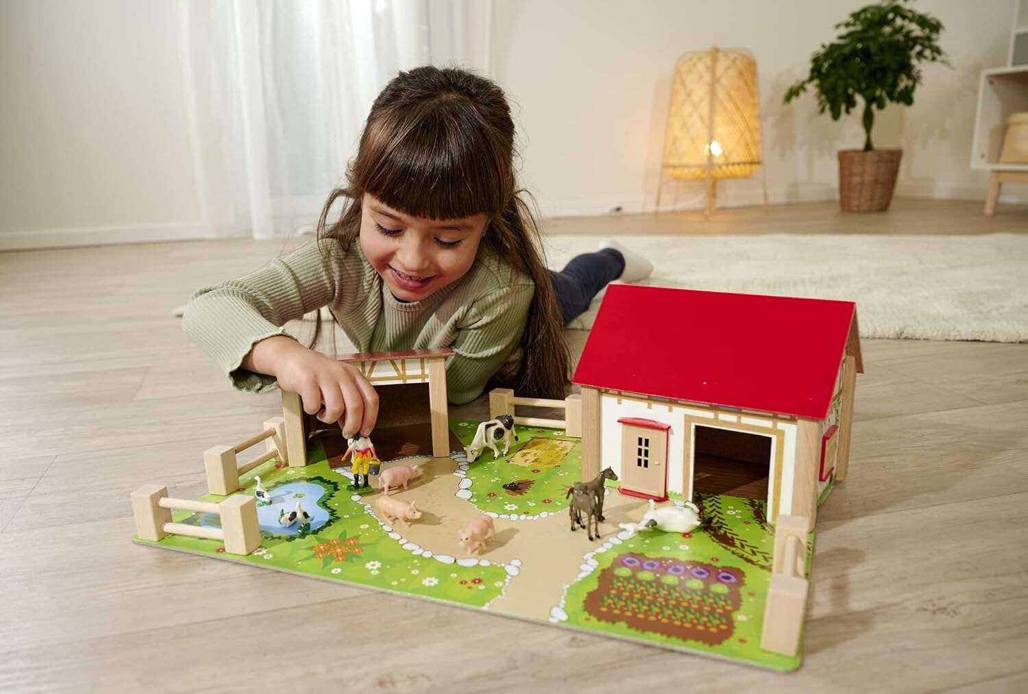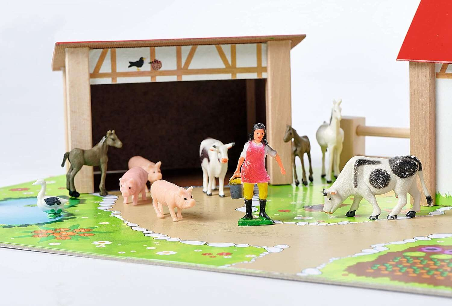 Na tej farmie zawsze coś się dzieje! dziecko stanie się prawdziwym farmerem – będzie mogło pielęgnować ogródek, uprawiać warzywa, a także troszczyć się o zwierzęta: sympatyczne świnki, krówki, gęsi i konie. Wielki dom farmerski z oborą, stajnią oraz otwieranymi drzwiczkami i oknami pozwoli na realistyczną zabawę, przenosząc malucha na urokliwą wieś, gdzie każda przygoda jest na wyciągnięcie ręki.