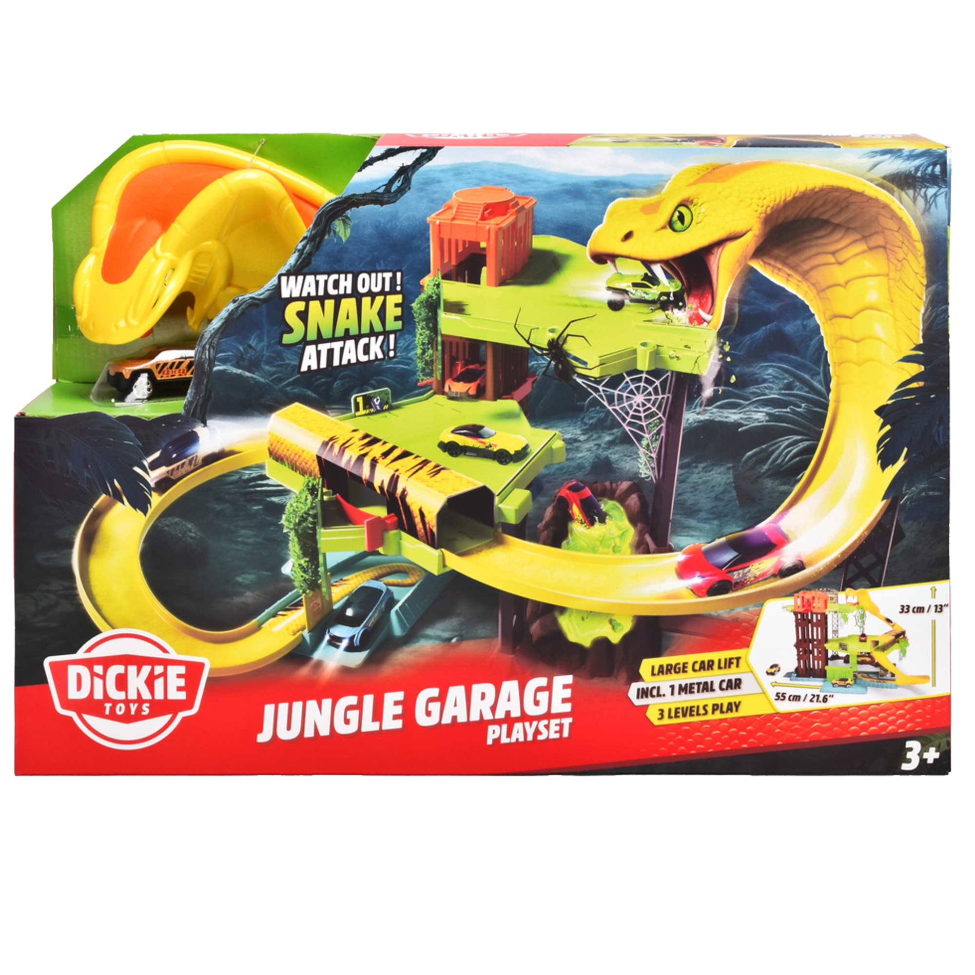 Zestaw składa się z niesamowitego toru samochodowego prowadzącego przez gigantycznego węża, który w każdej chwili może zaatakować przejeżdżające autko. Wykonany w przyjemnej, żywej kolorystyce z motywem dżungli z realistycznymi detalami takimi jak liany, drzewa i dekoracje.