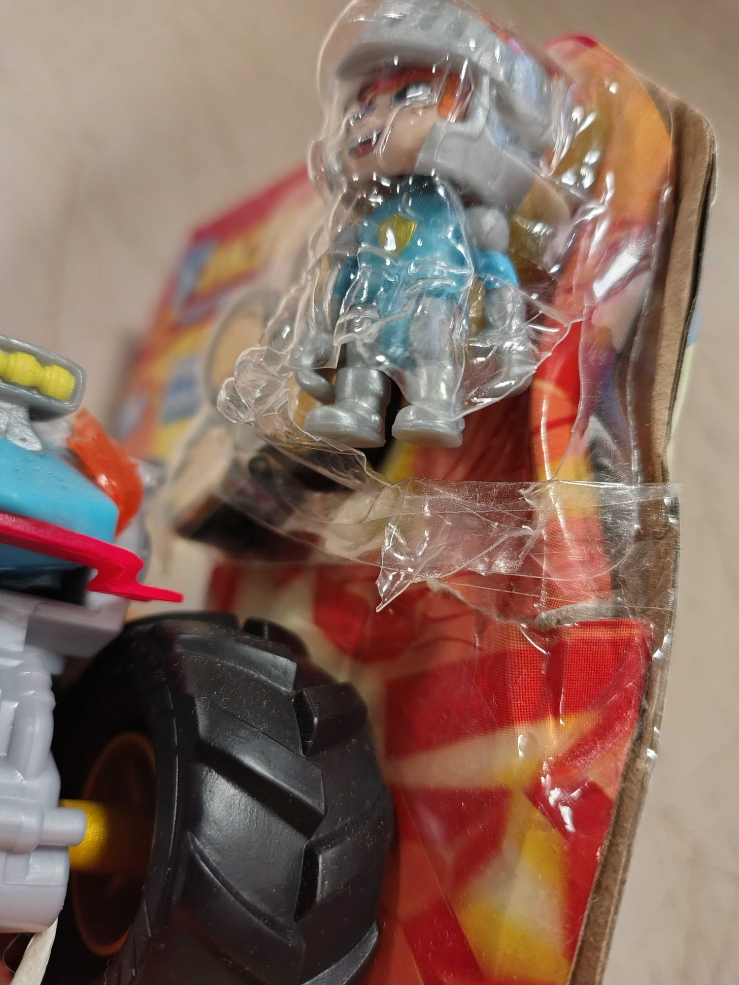 - W skład zestawu wchodzi kierowca, koła oraz 3 części autka, które można połączyć ze sobą w całe autko wyścigowe, a także podwozie auta typu Monster Truck.
