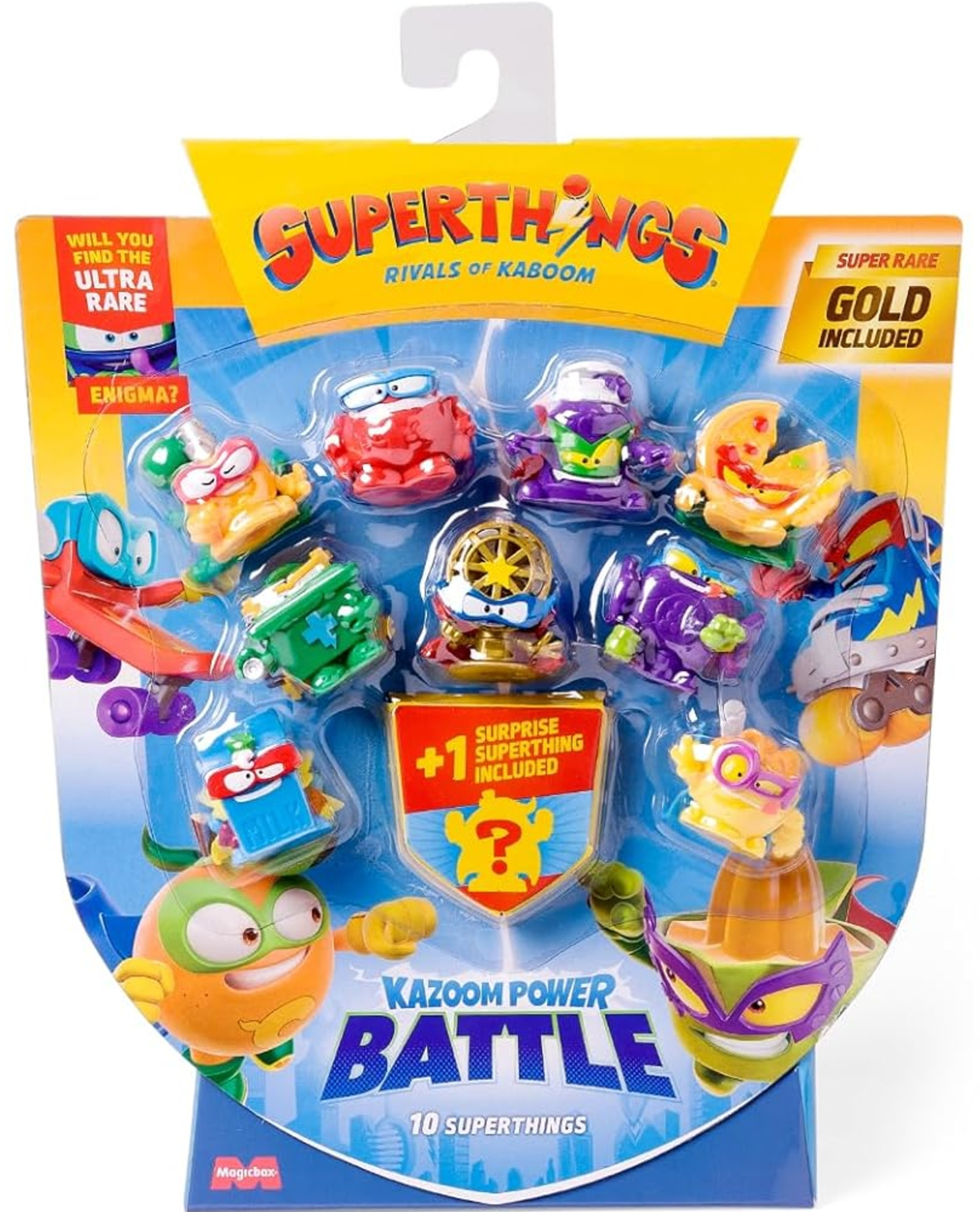 - W opakowaniu znajduje się 9 figurek superthings i 1 figurka niespodzianka z serii Kazoom Power Battle.