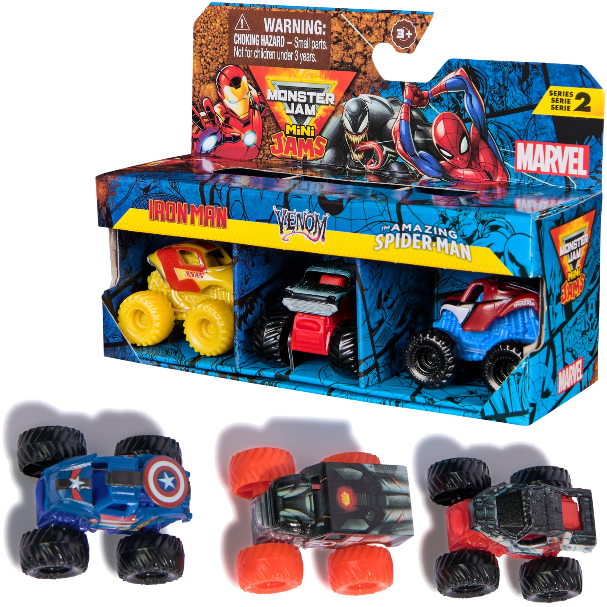 - Monster Jam spotyka świat Marvela! Zestawy Monster Jam 3w1 to wyjątkowe połączenie emocji z aren i potęgi ulubionych superbohaterów Marvela. W tym zestawie znajdują się pojazdy inspirowane: Zimowym Żołnierzem, Kapitanem Ameryka oraz War Machine.