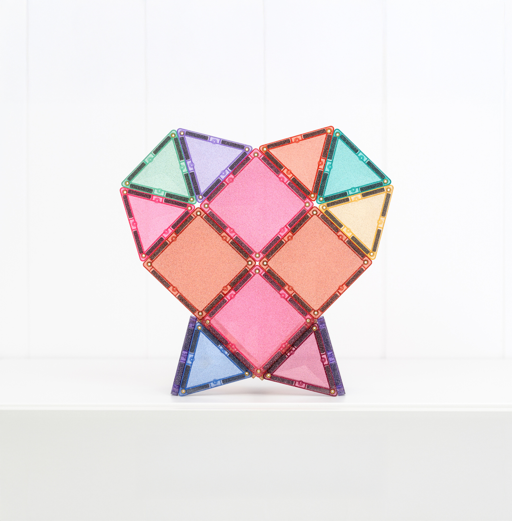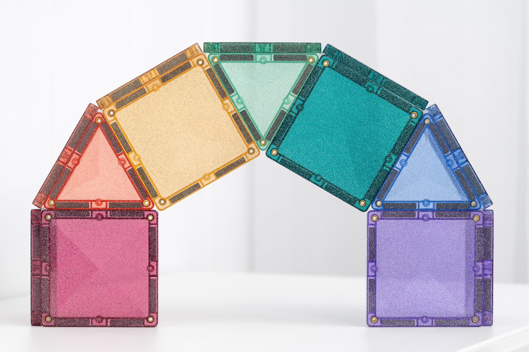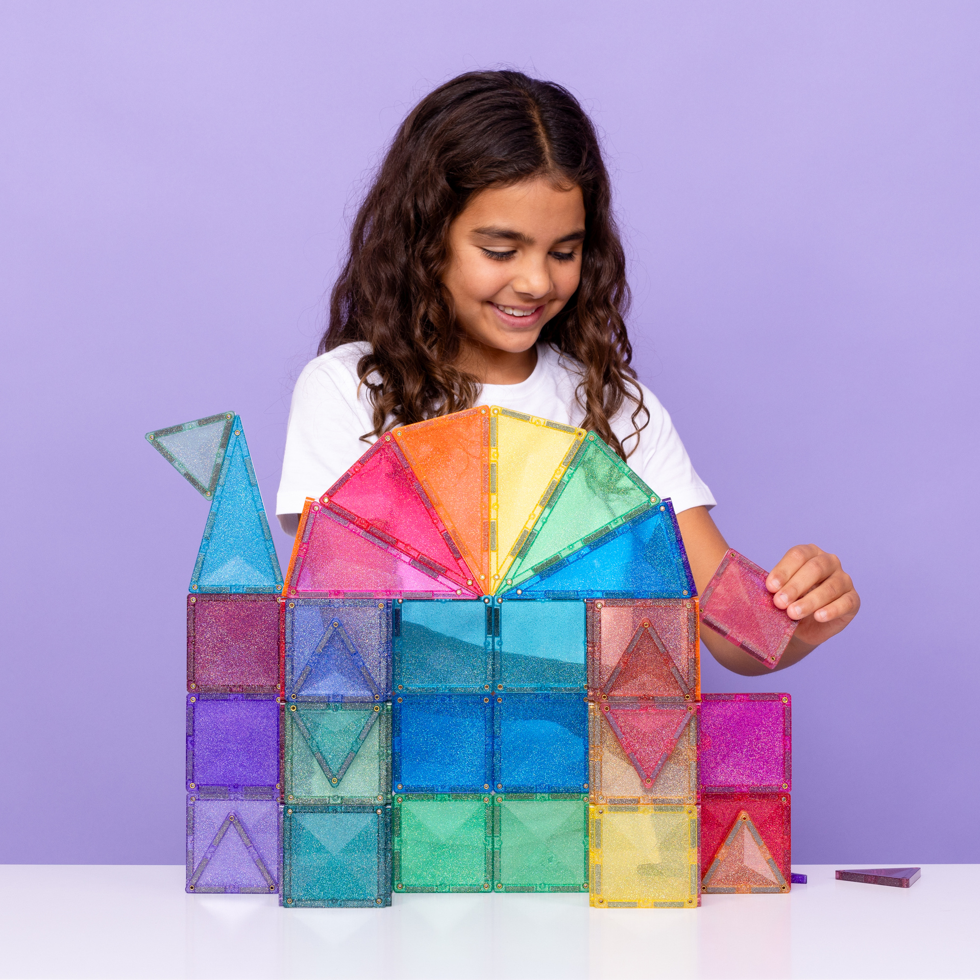 Ten 48-elementowy zestaw w kolorach tęczy z brokatem to klucz do nieskończonych konstrukcji dzięki którym dziecko budując trójwymiarowe zamki, mosty czy tory dla kulek, nieświadomie rozwija umiejętności STEAM (nauka, technologia, inżynieria, sztuka, matematyka) - od fizyki magnetyzmu po geometrię przestrzenną!