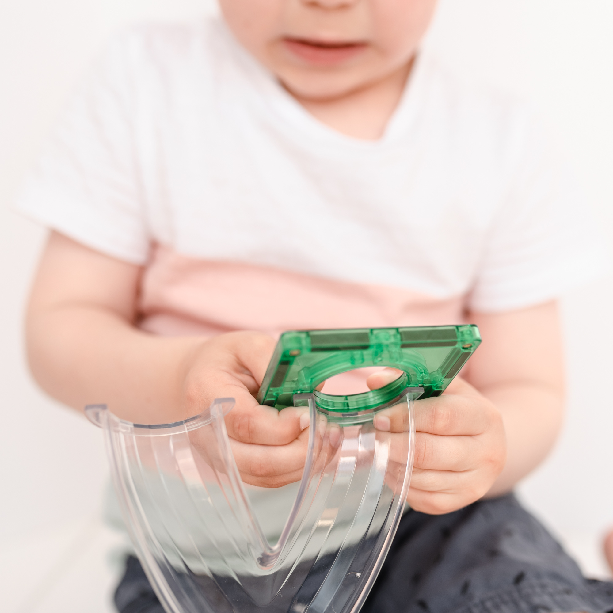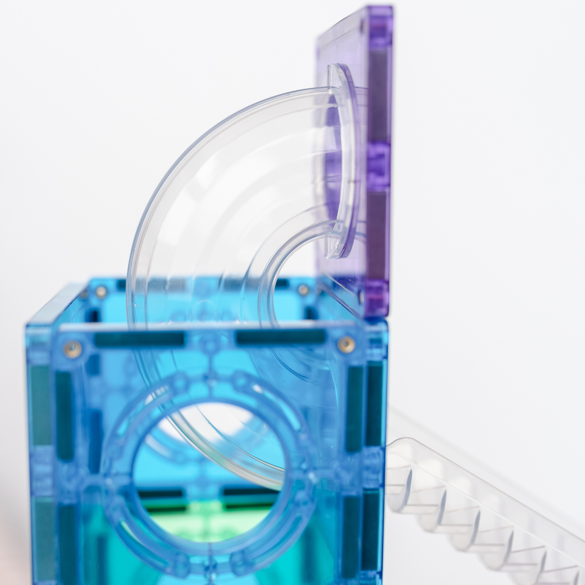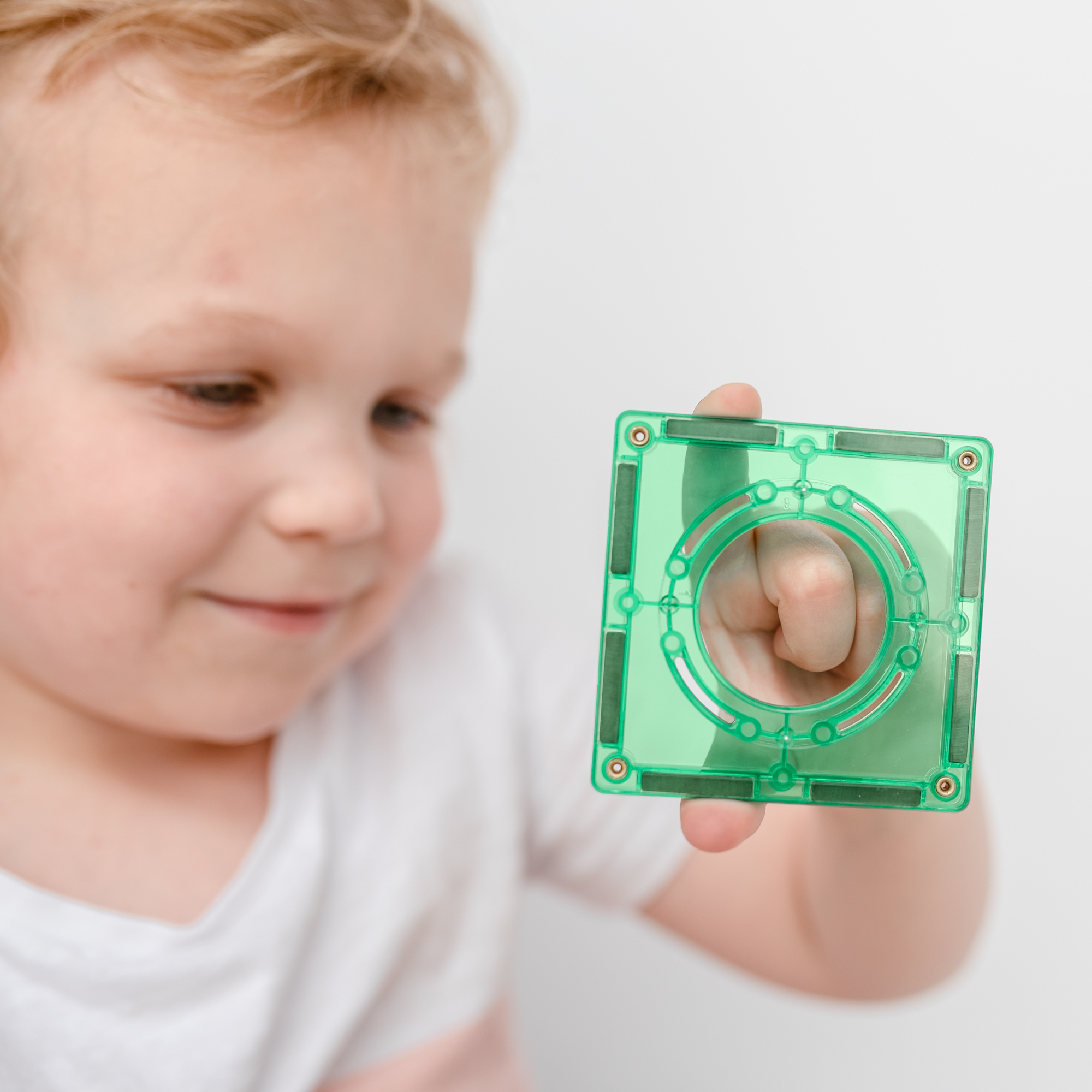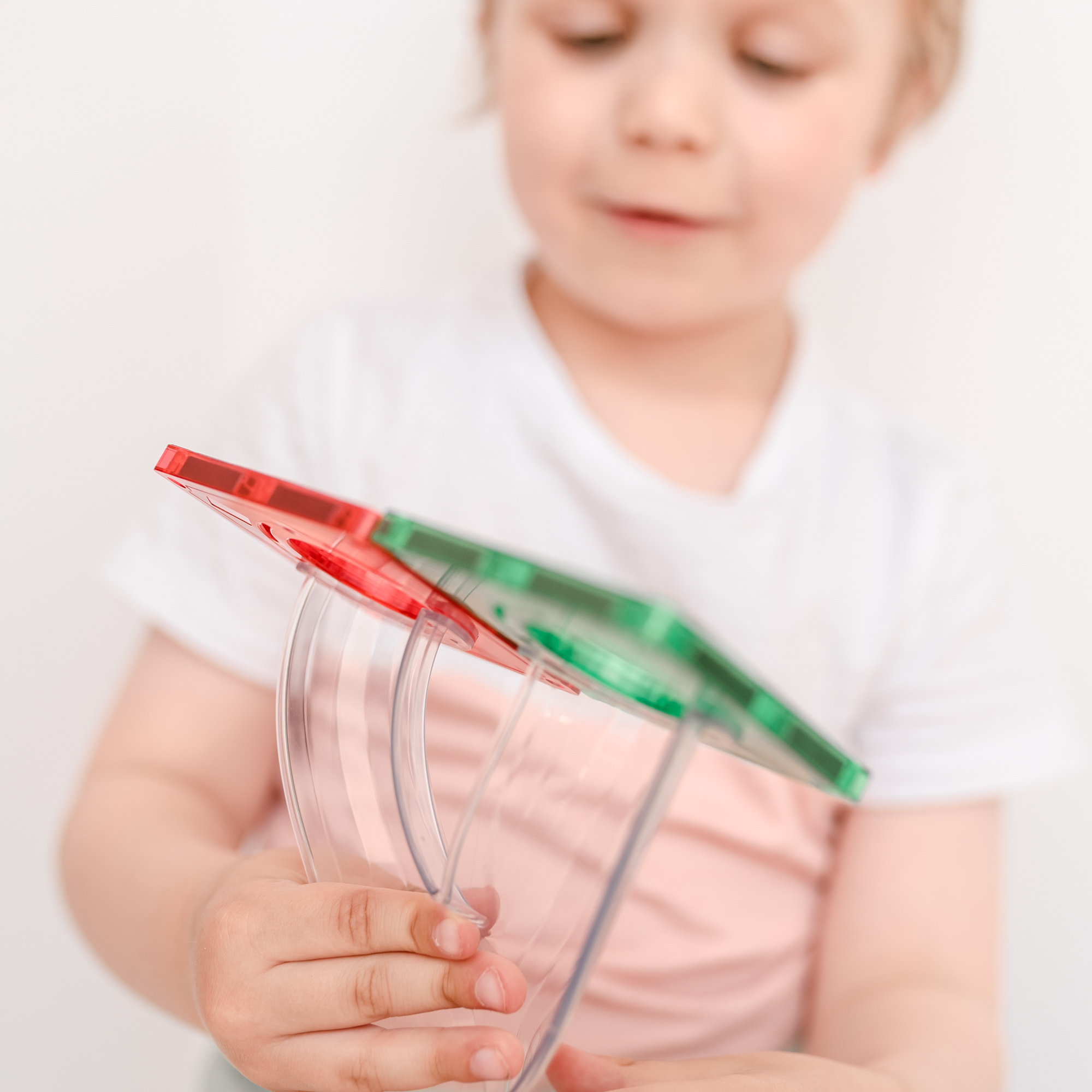 Przezroczyste, barwione płytki nie odbarwiają się i są odporne na uszkodzenia. Wbudowane, zanitowane silne magnesy neodymowe pozwalają klockom przyciągać się z każdej strony, tworząc stabilne, przestrzenne modele. Wyjątkowe "kliknięcie" łączących się kafelków daje satysfakcję małym inżynierom.
