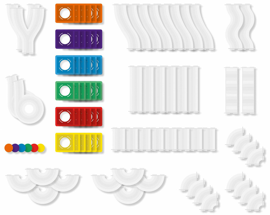 - Ten 92-elementowy zestaw w kolorach tęczy to klucz do nieskończonych konstrukcji dzięki którym dziecko budując trójwymiarowe zamki, mosty czy tory dla kulek, nieświadomie rozwija umiejętności.