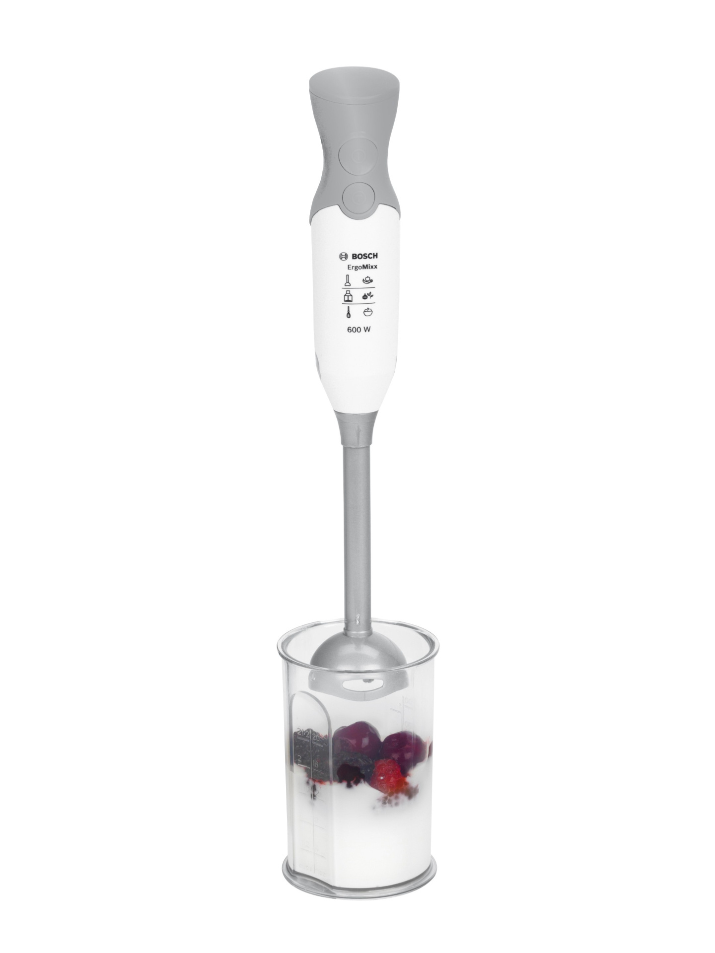 - W zestawie: ręczny blender oraz przezroczysty pojemnik z miarką (250 ml).