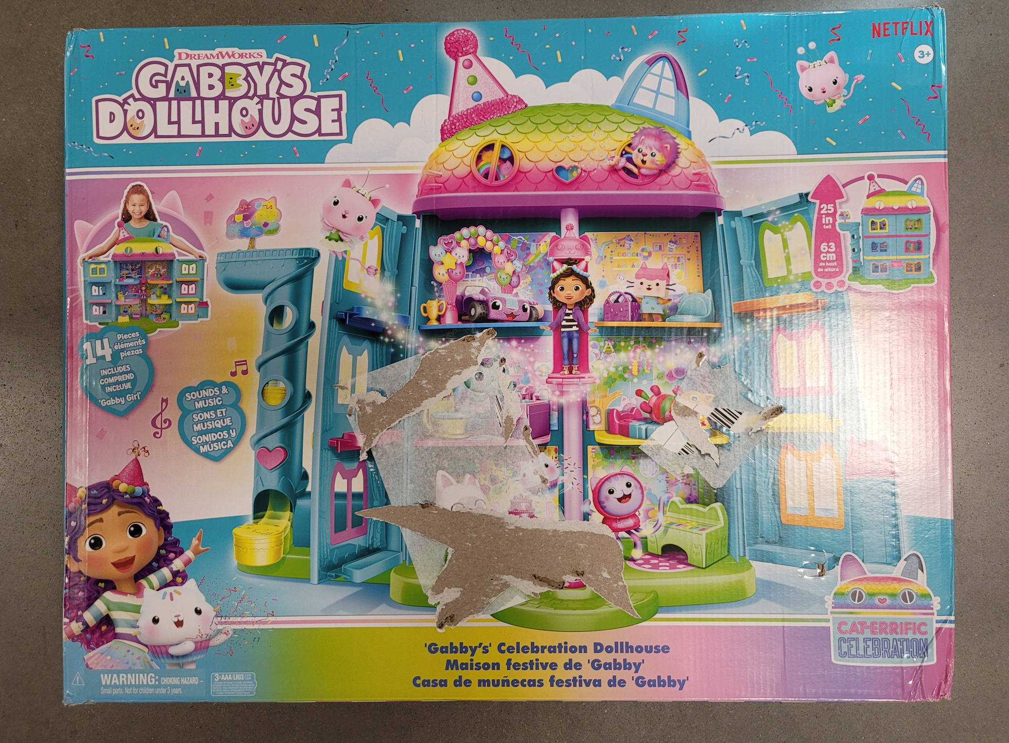 OUTLET Koci Domek Gabi Wielki tęczowy dom z windą i laleczką Gabby's Celebration Dollhouse USZKODZONE OPAKOWANIE