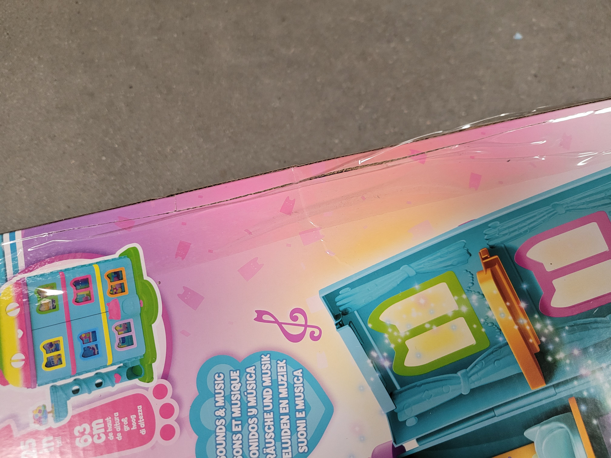 Wrzucaj przesyłki do wieży dostawczej i naciśnij przycisk, aby odkryć ukryte skarby, a także otwórz domek, aby usłyszeć 6 efektów dźwiękowych znanych z serialu.