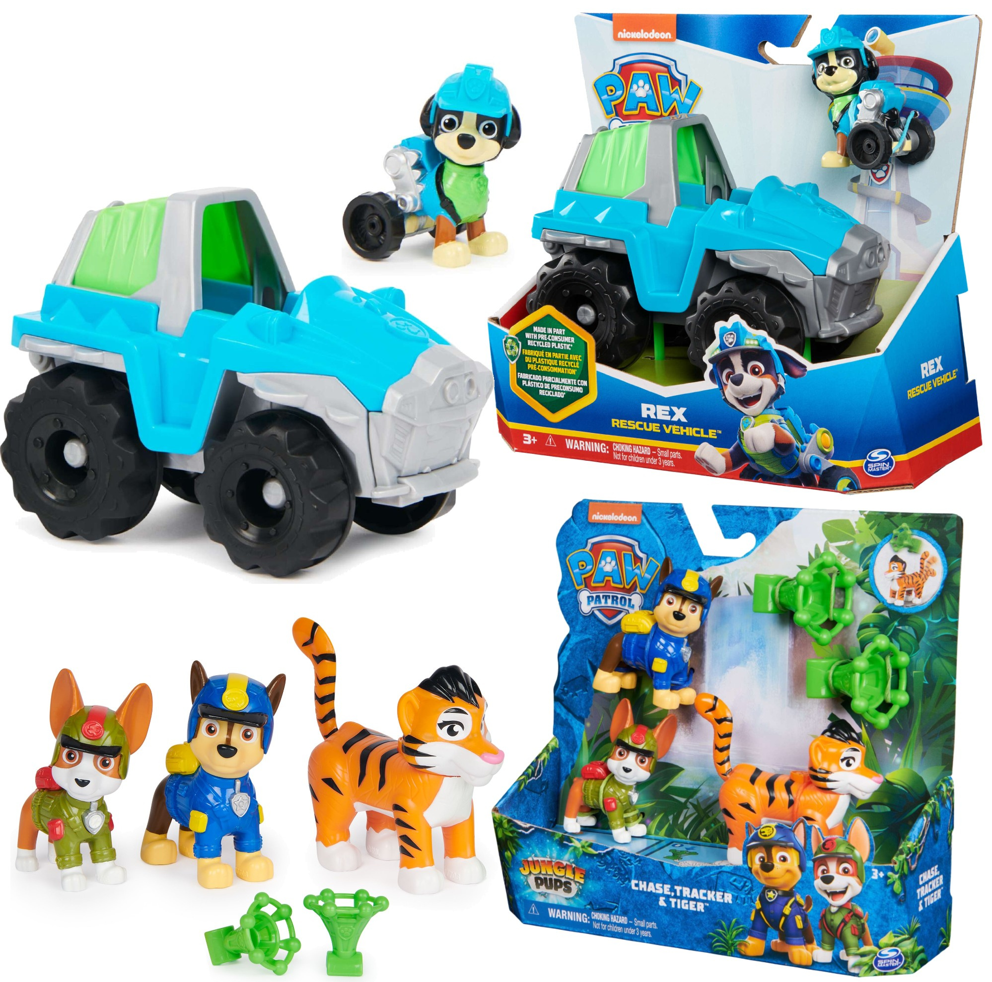 Zestaw Psi Patrol – Rex Eco + Jungle Pups Chase & Tracker z tygrysem i akcesoriami