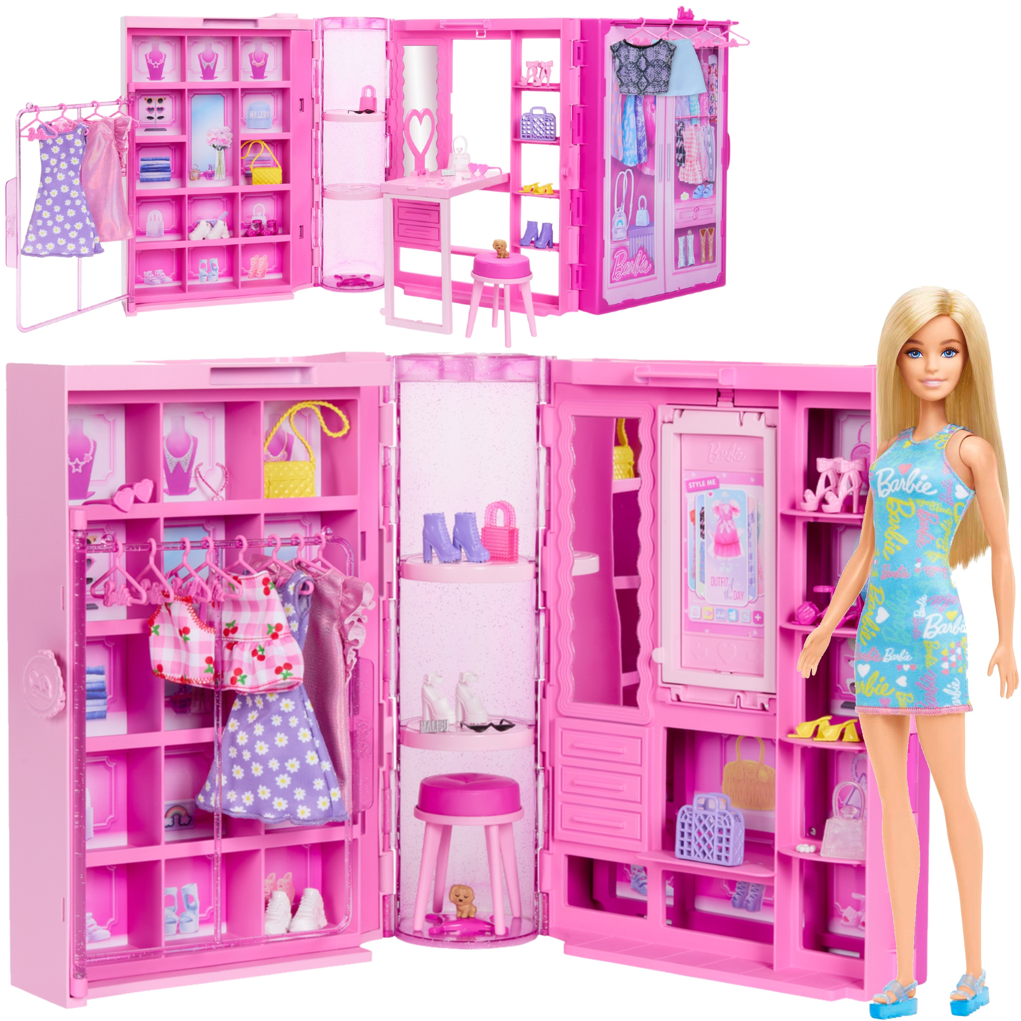- Szafa Marzeń Barbie to wymarzony zestaw do kreatywnej zabawy z imponującą przestrzenią o długości ponad 90 cm, ponad 20 miejscami do przechowywania i ponad 25 elementami garderoby i akcesoriami, w tym czterem kompletnym stylizacjom.