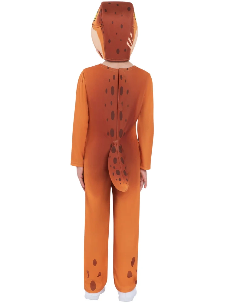 W skład zestawu wchodzi kombinezon z ogonkiem oraz czapeczka, dzięki którym maluch wygląda jak prawdziwy dinozaur. Kostium odwzorowuje charakterystyczne cechy prehistorycznych zwierząt takie jak: wzory na ogonie, zęby oraz wściekłe spojrzenie.