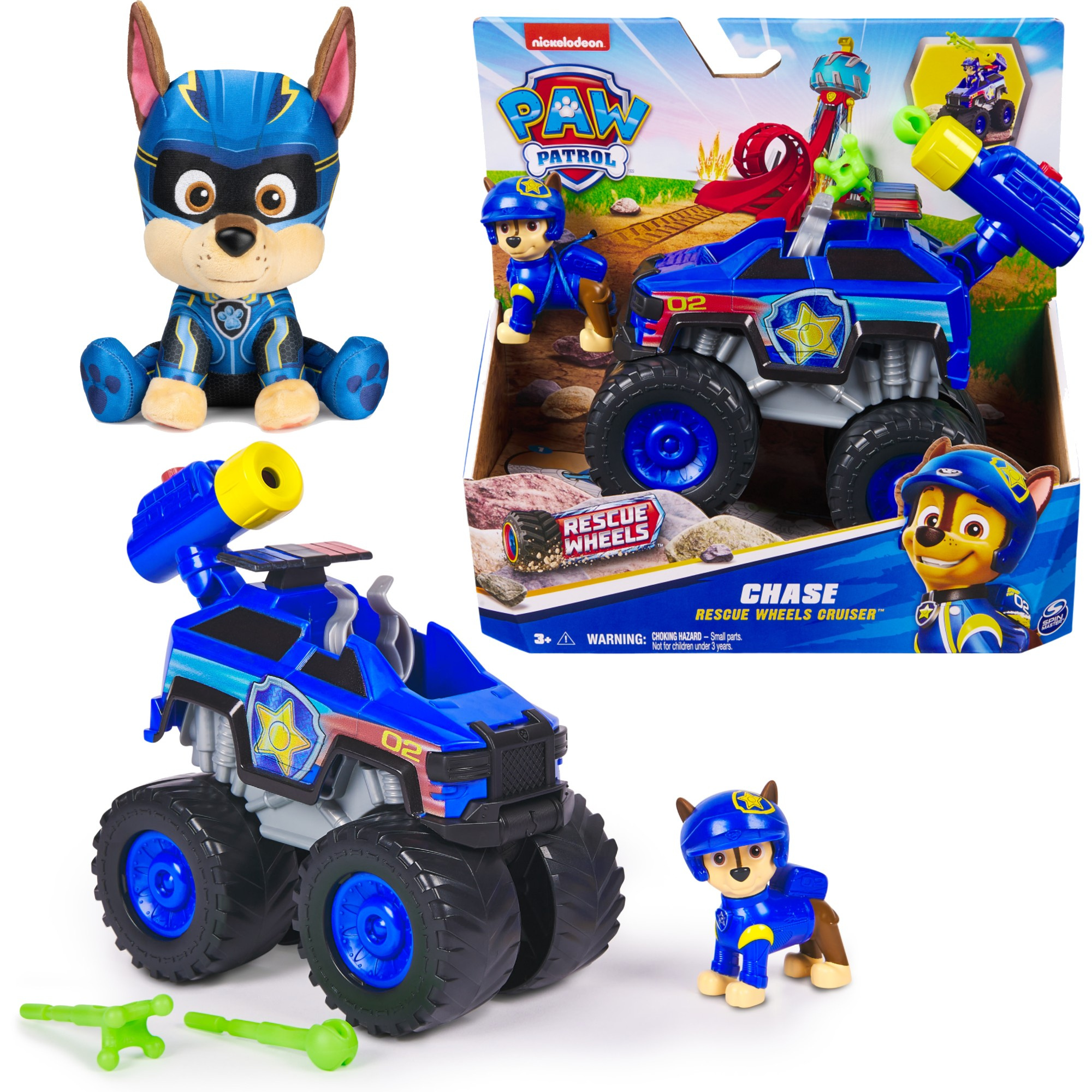 Psi Patrol Rescue Wheels niebieski Pojazd terenowy z figurką Chase 6cm + maskotka 23 cm