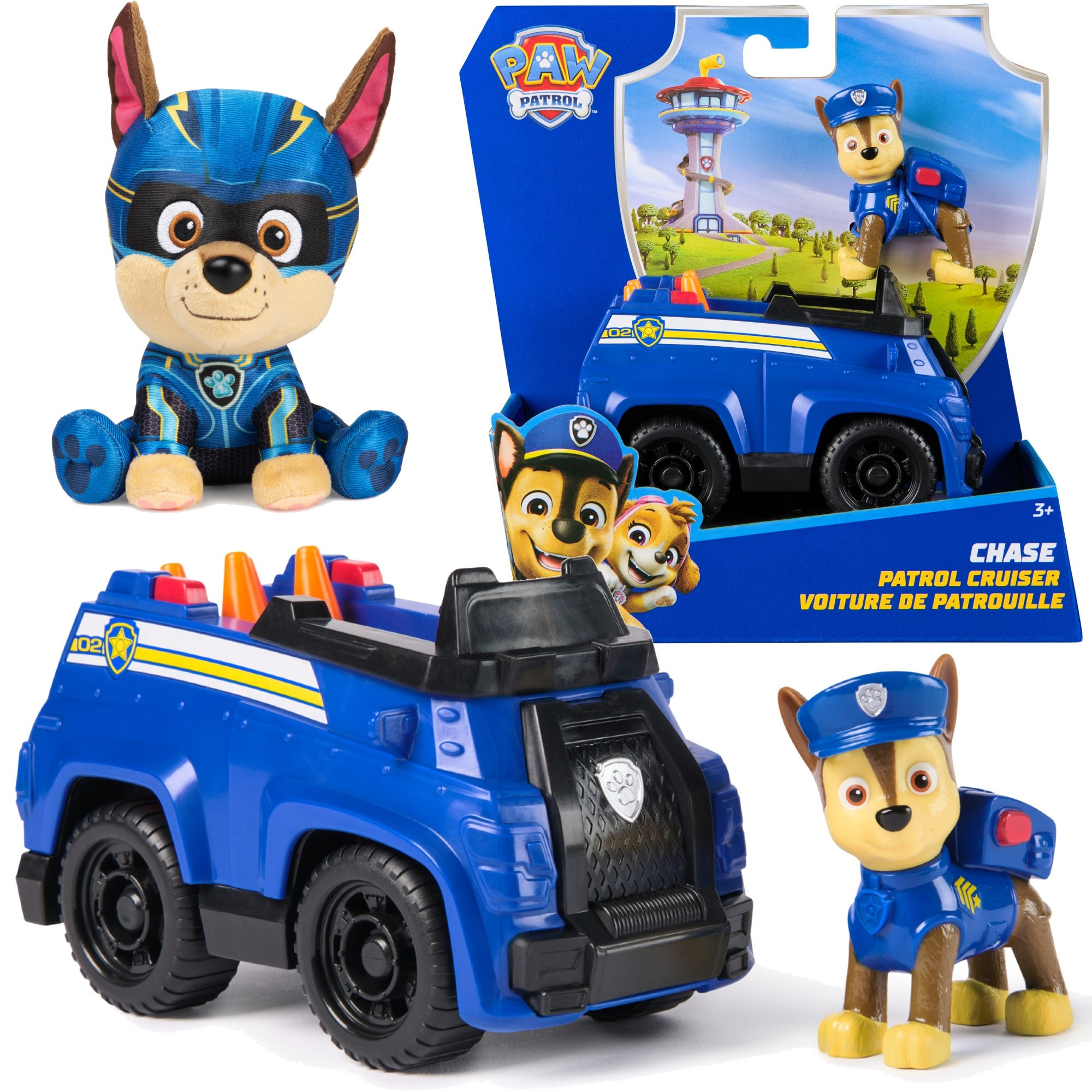 Zestaw Psi Patrol Pojazd z figurką Radiowóz policyjny Chase + maskotka 15 cm