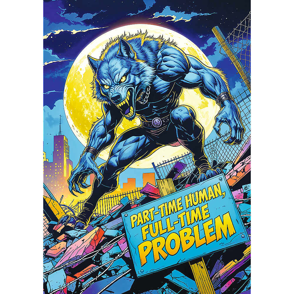 Zestaw składa się z 1000 elementów i umożliwia stworzenie obrazka zainspirowanego motywem horrorów - wściekłego wilkołaka podczas pełni księżyca.