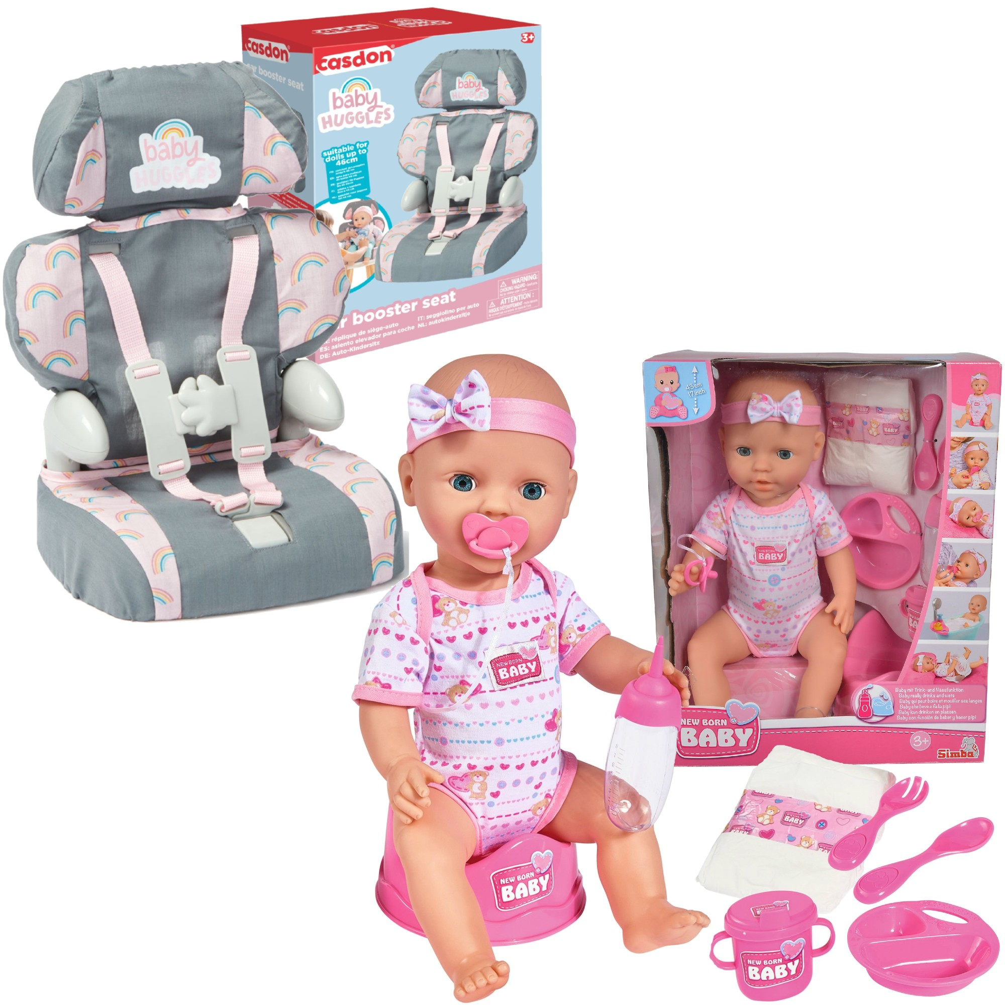 Zestaw Fotelik samochodowy dla lalek Casdon Baby Huggles + Lalka funkcyjna New Born Baby 43 cm