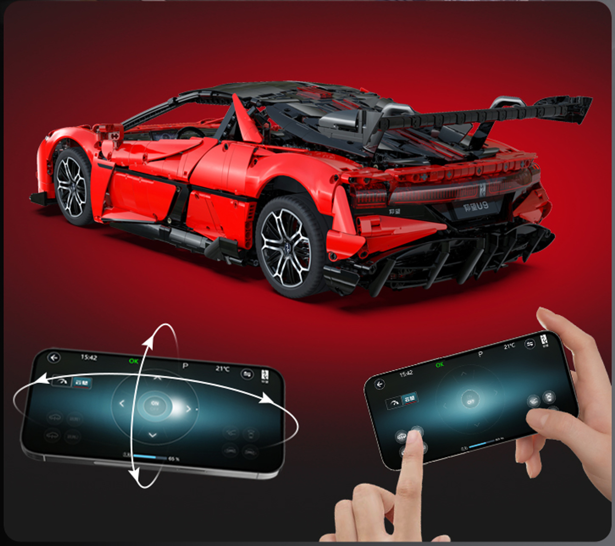 - Zestaw składa się z 3671 elementów i umożliwia samodzielne złożenie zdalnie sterowanego modelu pojazdu Klocki BYD Yangwang U9.