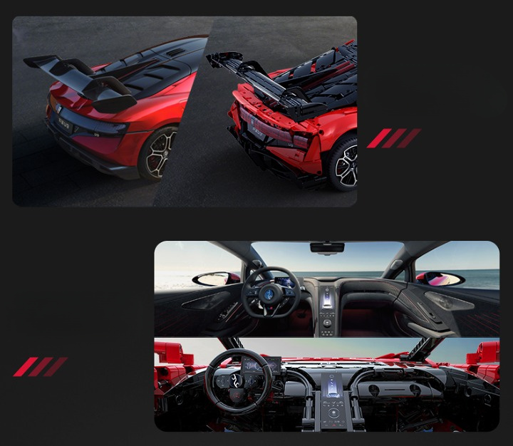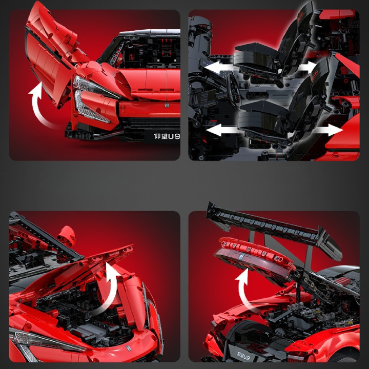 Zestaw składa się z 3671 elementów i umożliwia samodzielne złożenie zdalnie sterowanego modelu pojazdu Klocki BYD Yangwang U9.