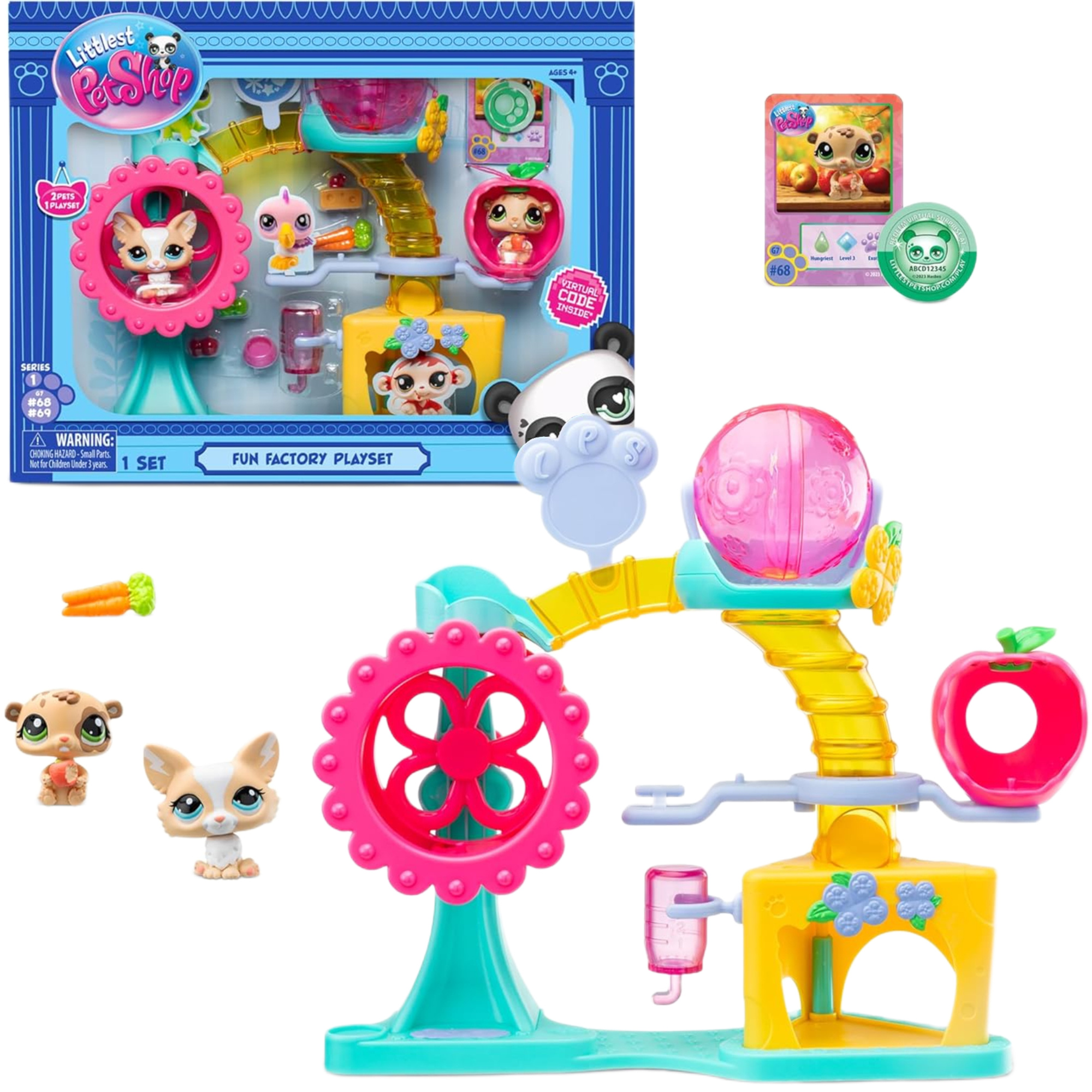 Zestaw Fun Factory to prawdziwe centrum rozrywki dla zwierzaków. W zestawie znajduje się 10 akcesoriów, dzięki którym można tworzyć niezliczone scenki i historie. Corgi i chomik mogą wspólnie bawić się w fabryce, kręcić w zabawkowych mechanizmach i zapraszać innych przyjaciół Littlest Pet Shop na imprezę pełną ruchu i zabawy!