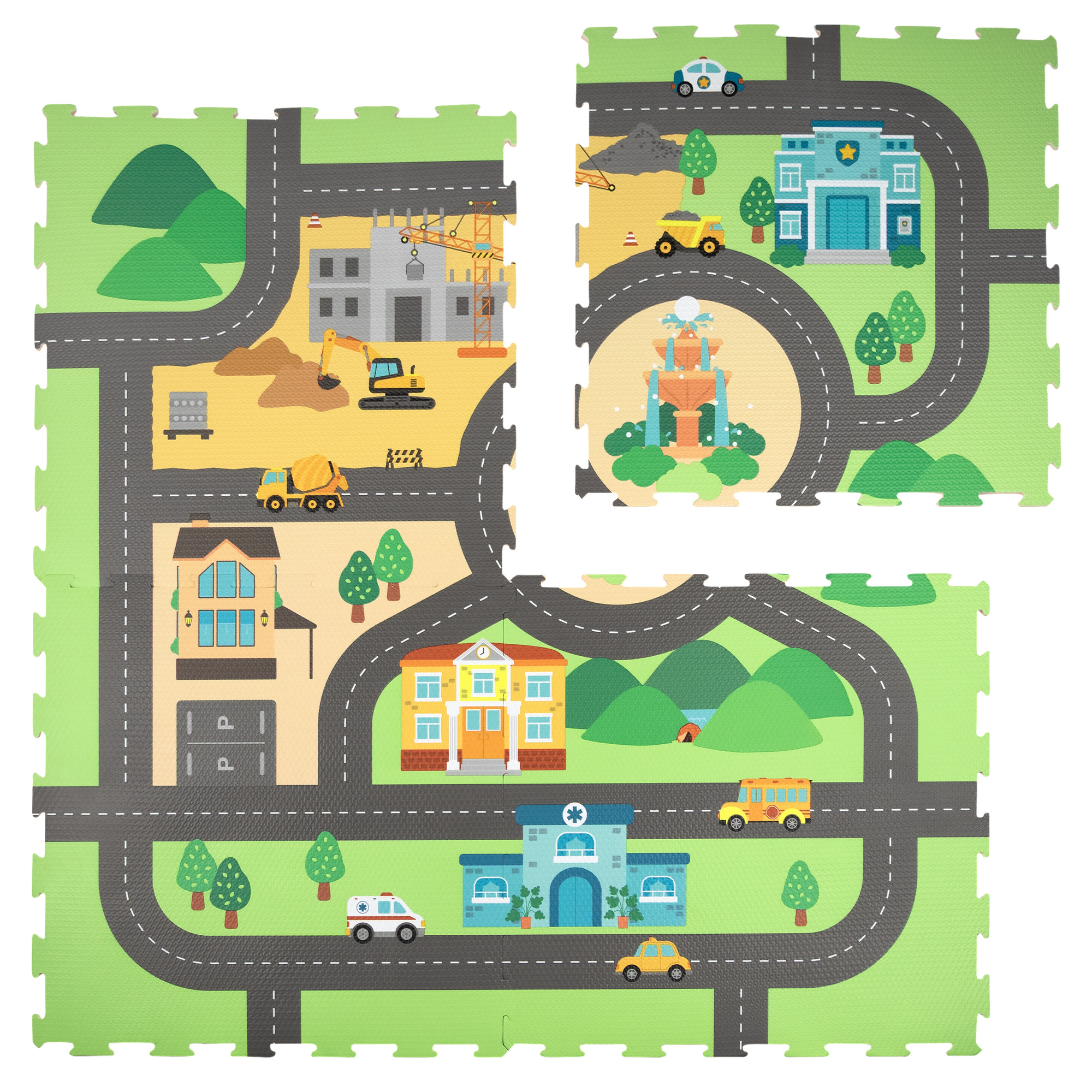 Mata podłogowa edukacyjna 120x120 Grube puzzle piankowe 4 szt. Humbi Miejskie ulice Miasto Miasteczko Drogi
