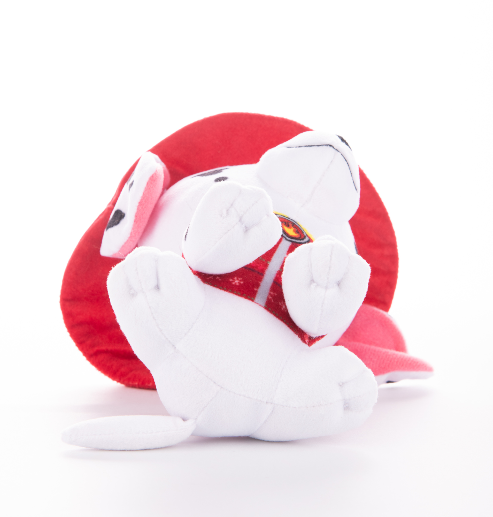 Maskotka przedstawia Marshalla - szczeniaka dalmatyńczyka, który w bajce pełni rolę strażaka w bajce Psi Patrol, ubranego w świąteczny strój.