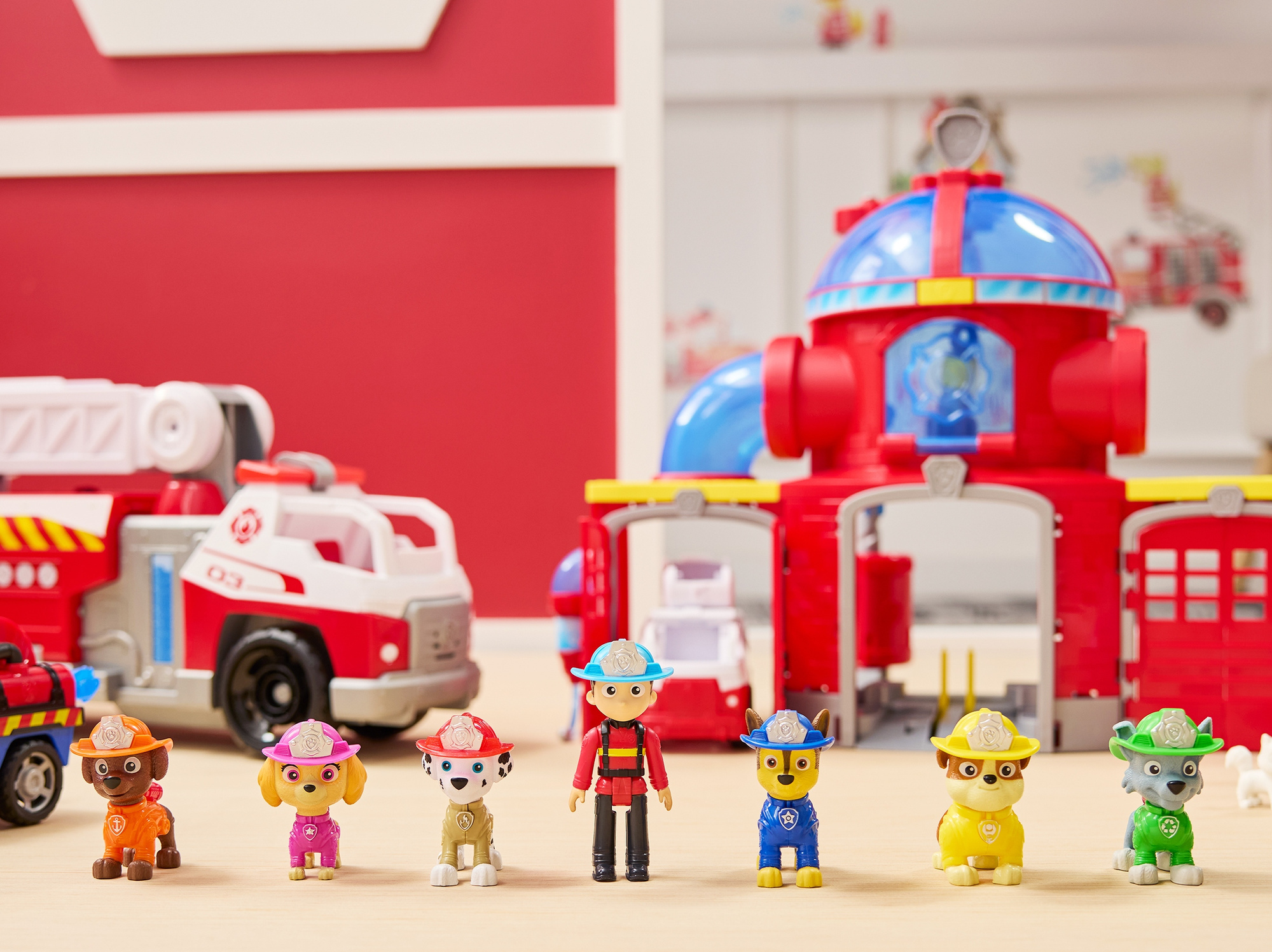 Każdy z piesków jest ubrany w nowy, strażacki strój z serii Fire Rescue, gotowy do gaszenia pożarów i niesienia pomocy mieszkańcom Adventure Bay. Kolorowe kombinezony i kaski nawiązują do charakterystycznych barw poszczególnych bohaterów - niebieskiego Chase’a, czerwonego Marshalla, różowej Skye, żółtego Rubble’a, zielonego Rockiego i pomarańczowego Zumy - dzięki czemu łatwo rozpoznać każdego członka drużyny.